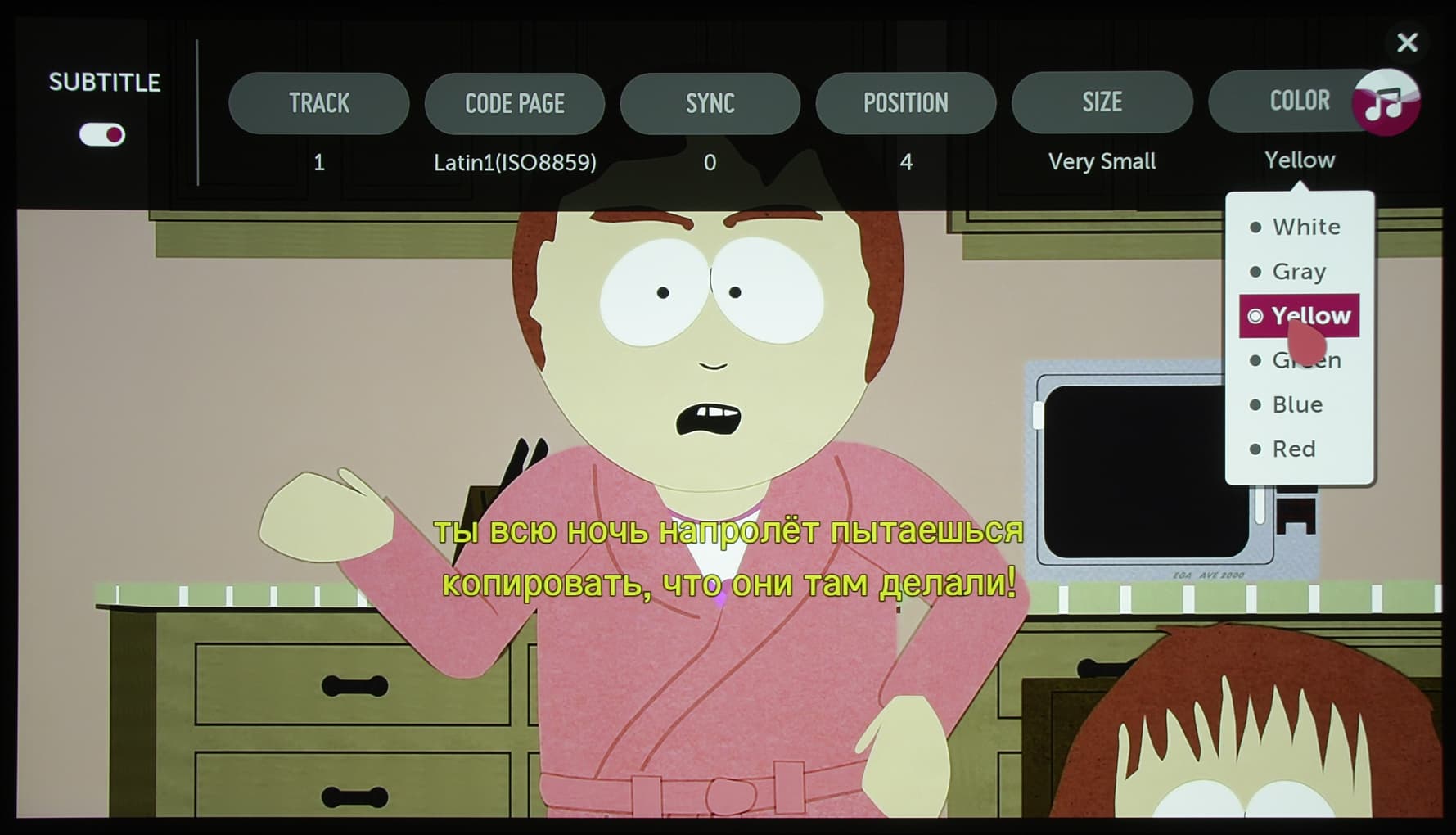 Короткое контекстное меню с настройками вызывается при нажатии на кнопку с шестеренкой на пульте. Что-то можно поменять прямо там, не вызывая основное меню. Основное меню вызывается, по всей видимости, только из короткого меню (нижний значок), что не очень удобно.