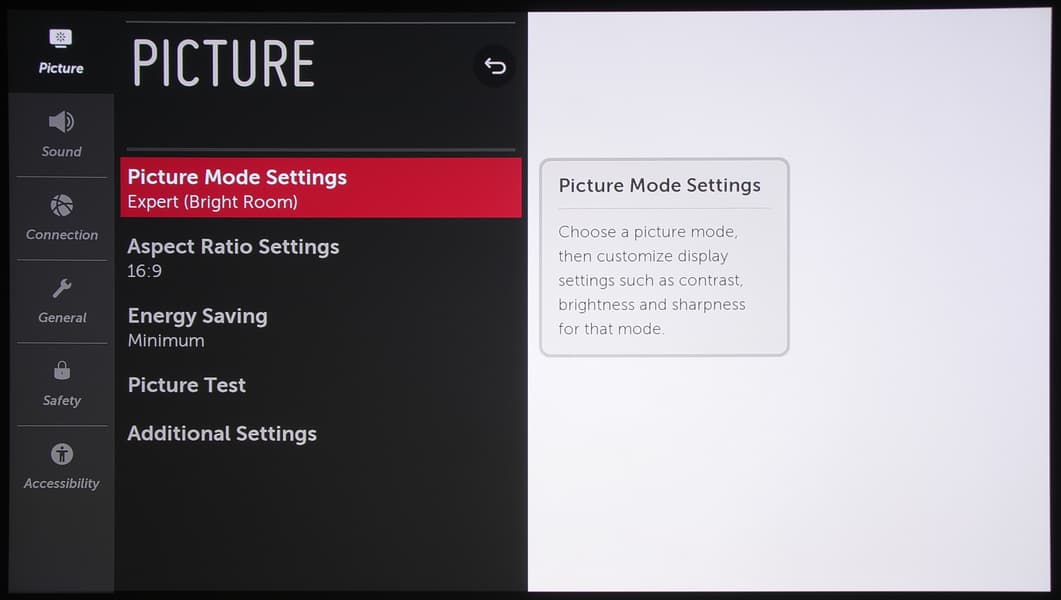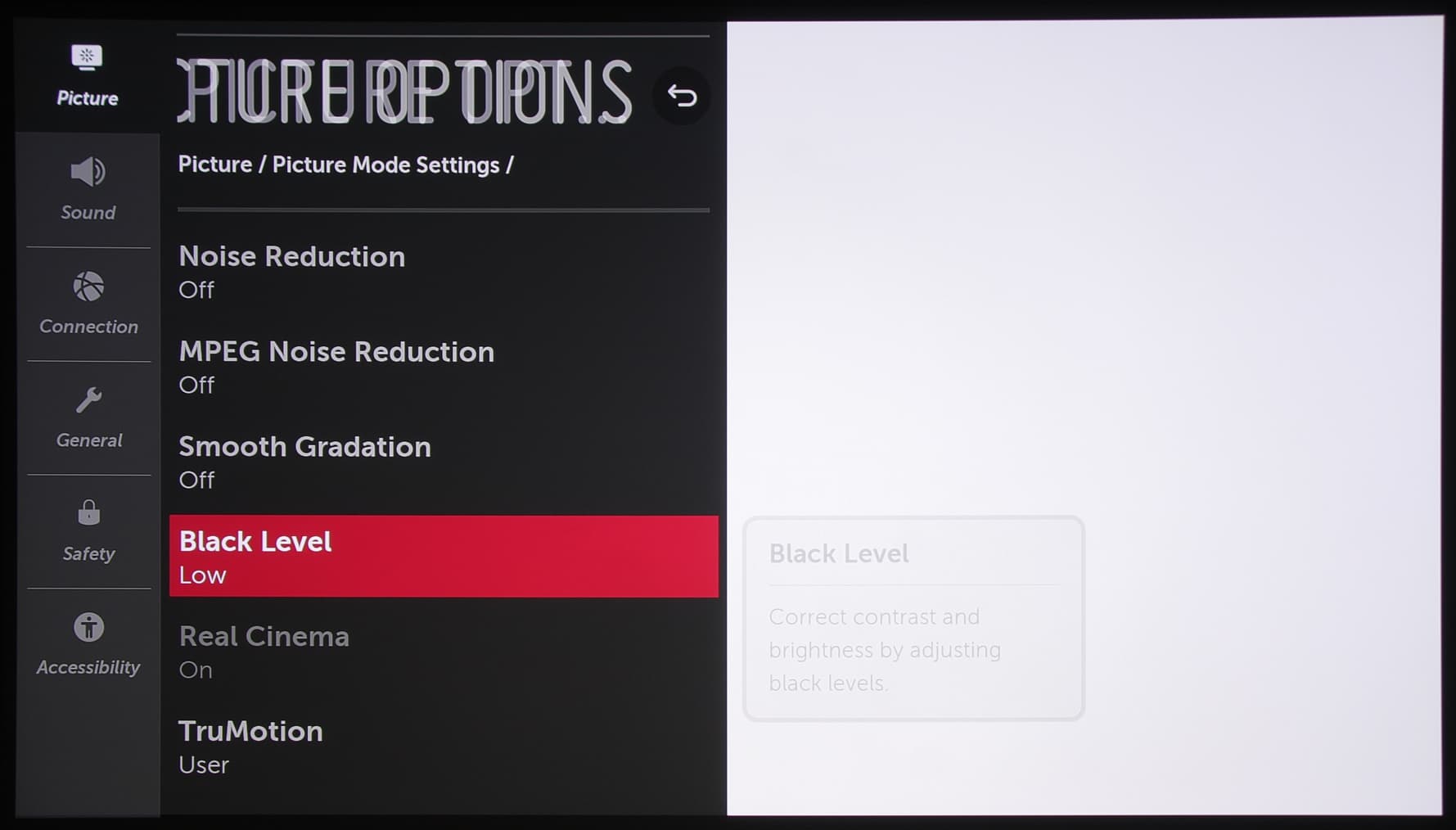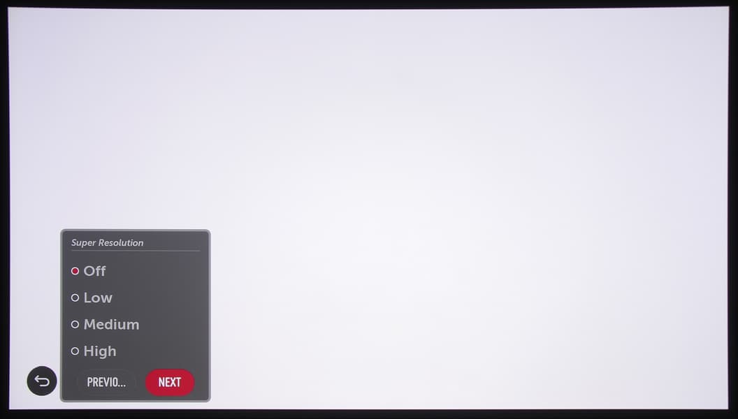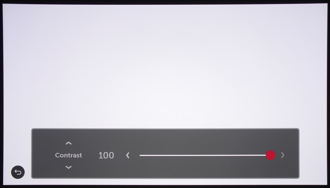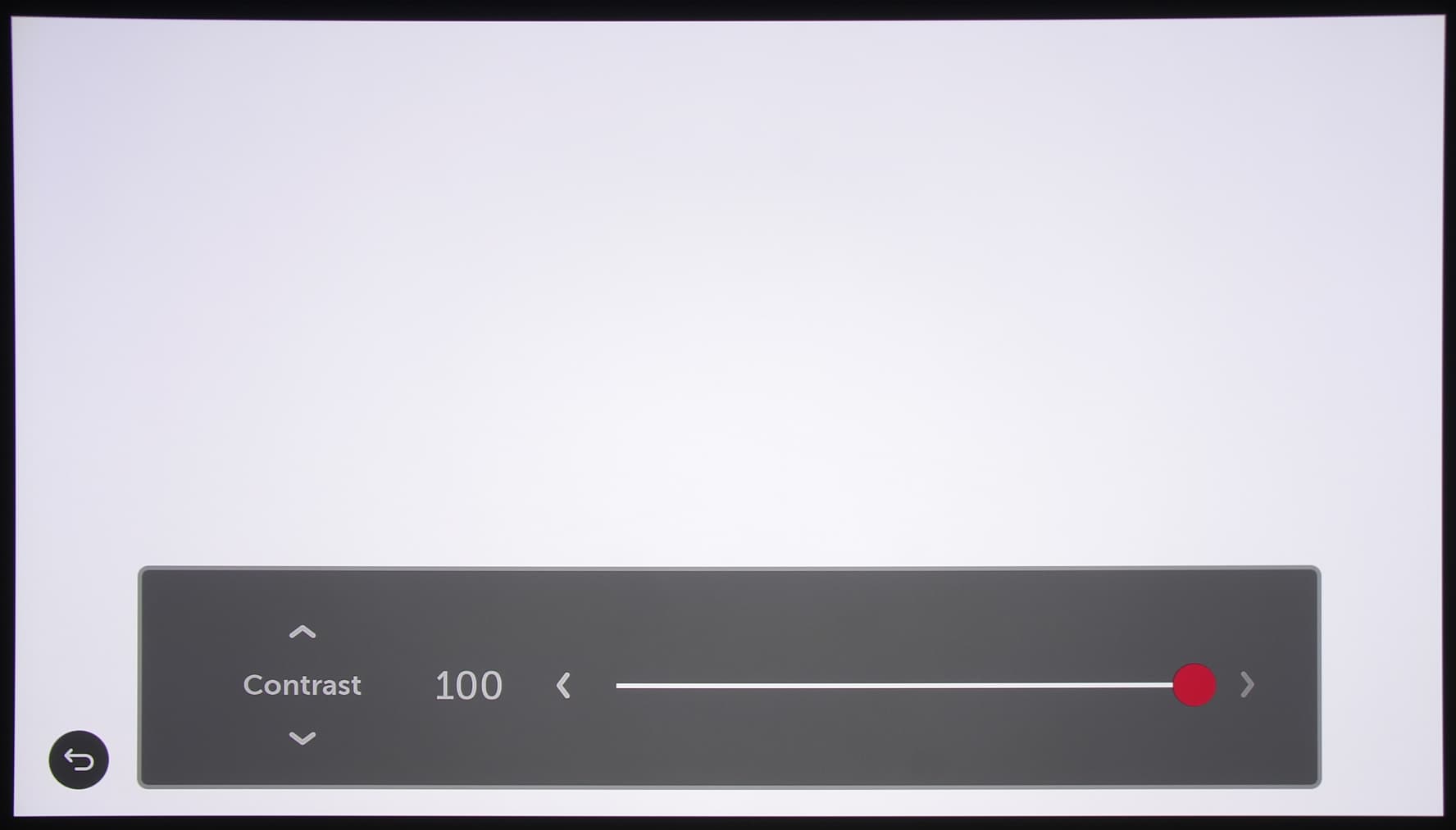 Непосредственно при регулировке параметров изображения на экран выводится уже только название настройки, ползунок и текущее значение или список вариантов, что облегчает оценку влияния этой настройки на изображение, при этом настройки с ползунками перебираются стрелками вверх и вниз (и колесиком), а со списками — кнопками назад и далее.