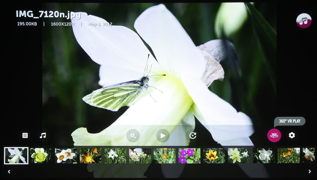 Нами подтверждена способность проектора показывать растровые графические файлы в форматах JPEG, PNG и BMP, в том числе в виде слайд-шоу под фоновую музыку. Правда, маленький значок запущенного аудиоплеера убрать нельзя (вернее, можно, но вместе с музыкой).