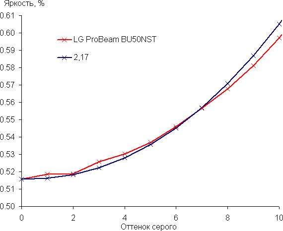 Для оценки характера роста яркости на шкале серого мы измерили яркость 17 оттенков серого при выборе различных значение параметра Gamma: