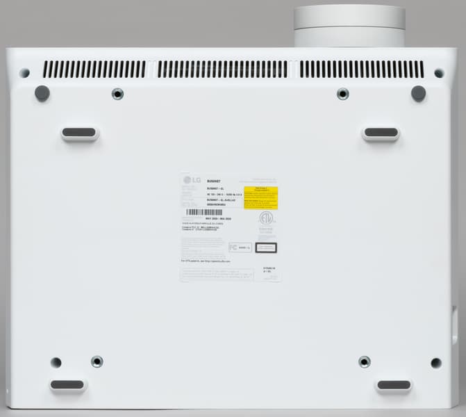 В качестве источника света в данном проекторе используются синий лазерный светодиод и вращающийся круг с люминофором, превращающий часть синего света в желтый (схема LD + P/W). Синий плюс желтый дают белый свет. Принцип работы такого DLP-проектора объясняется по этой ссылке, вариант — Laser Phosphor Technology based on 1-chip DLP Technology. Там, правда, используется желтый и зеленый люминофоры, возможно, и в случае этого проектора люминофоров тоже два, но спектры данное предположение скорее опровергают. Для этого источника света заявлен срок службы до 20 000 часов, что на порядок больше типичного срока службы ртутной лампы. Конечно, это не означает, что любой конкретный проектор LG ProBeam BU50NST сможет проработать все эти 13 с лишним лет (если использовать его по 4 часа в день), но все же периодических проблем с заменой лампы уже точно не будет.