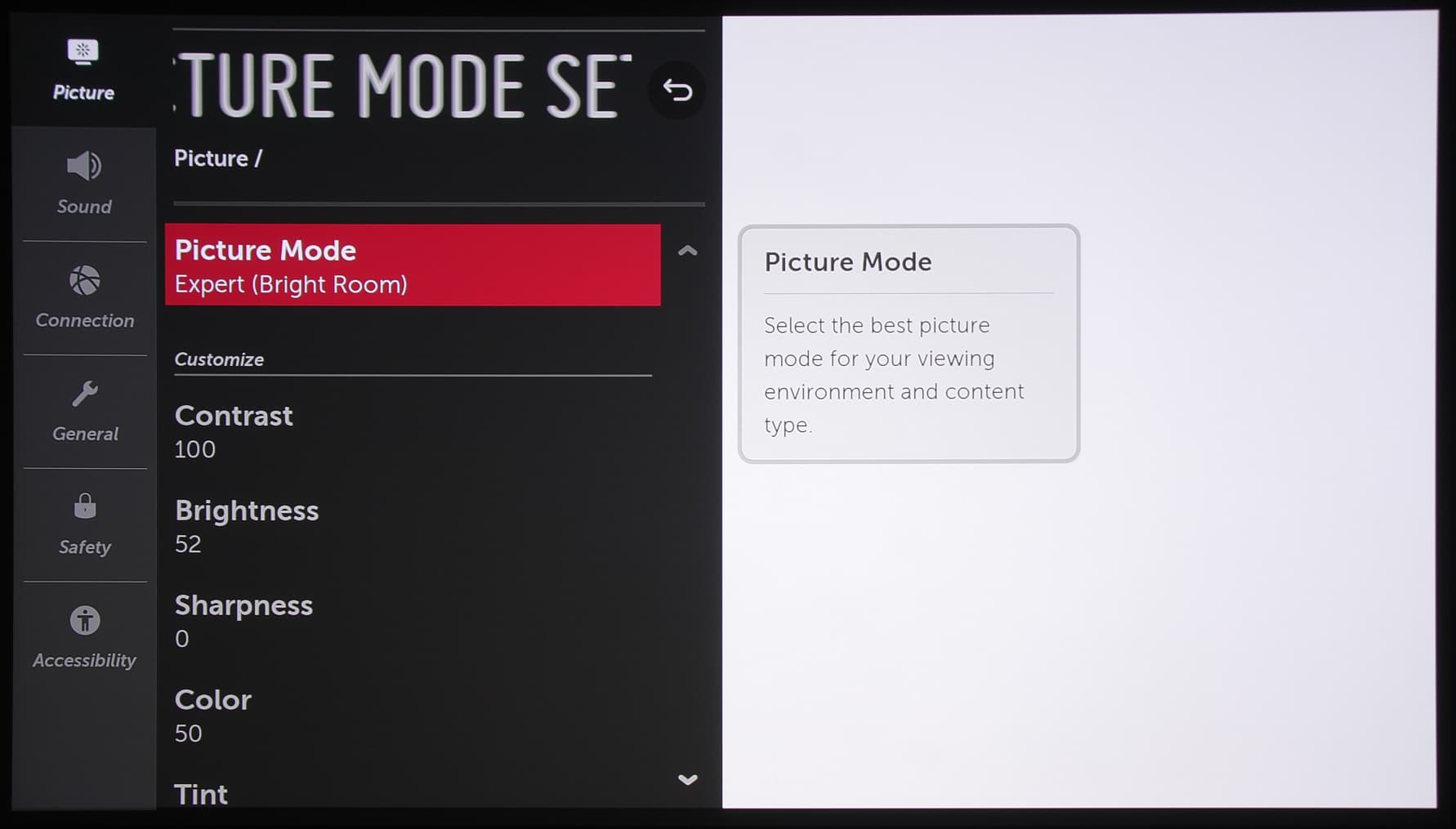 Меню с настройками занимает большую часть экрана, надписи в нем читаемые. Русифицированного варианта интерфейса нет. Однако представители производителя нас заверили, что в проекторах, которые будут продаваться в России, русское меню будет. По умолчанию слева выводится окно с подсказками.