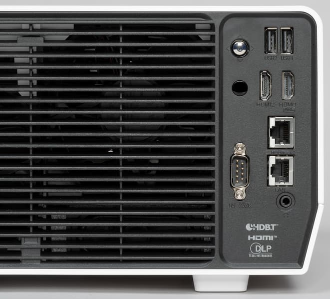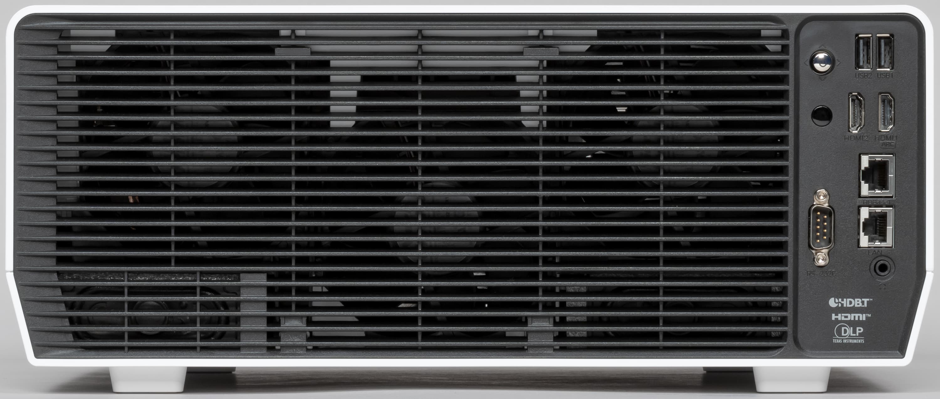 Проектор оснащен стандартными полноразмерными разъемами. Большинство разъемов расположены достаточно свободно, но вот пара USB — тесновато. Таблица с характеристиками в начале статьи дает представление о коммуникационных возможностях проектора.