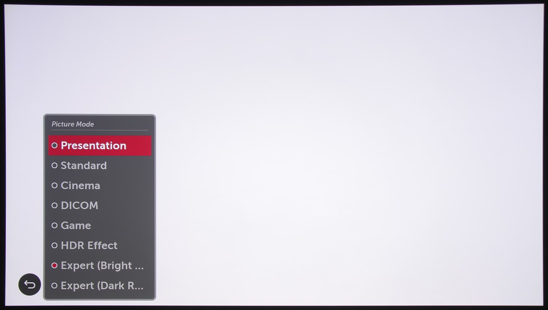 Цветовой охват меняется в зависимости от выбранного профиля (режима) и значения настройки Color Gamut (если она доступна). Например, в режиме Presentation охват самый широкий: