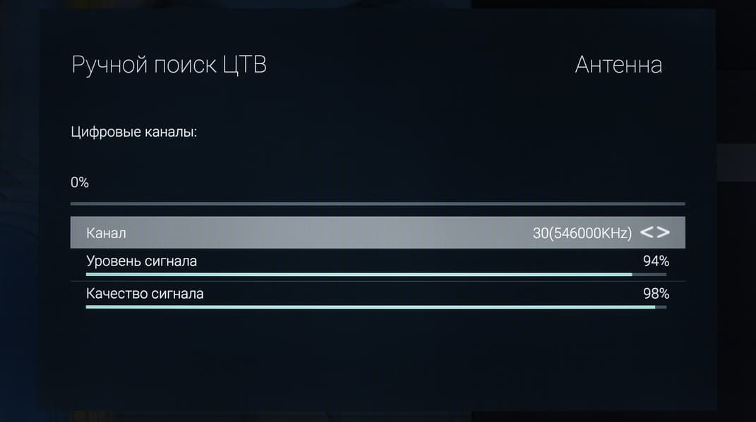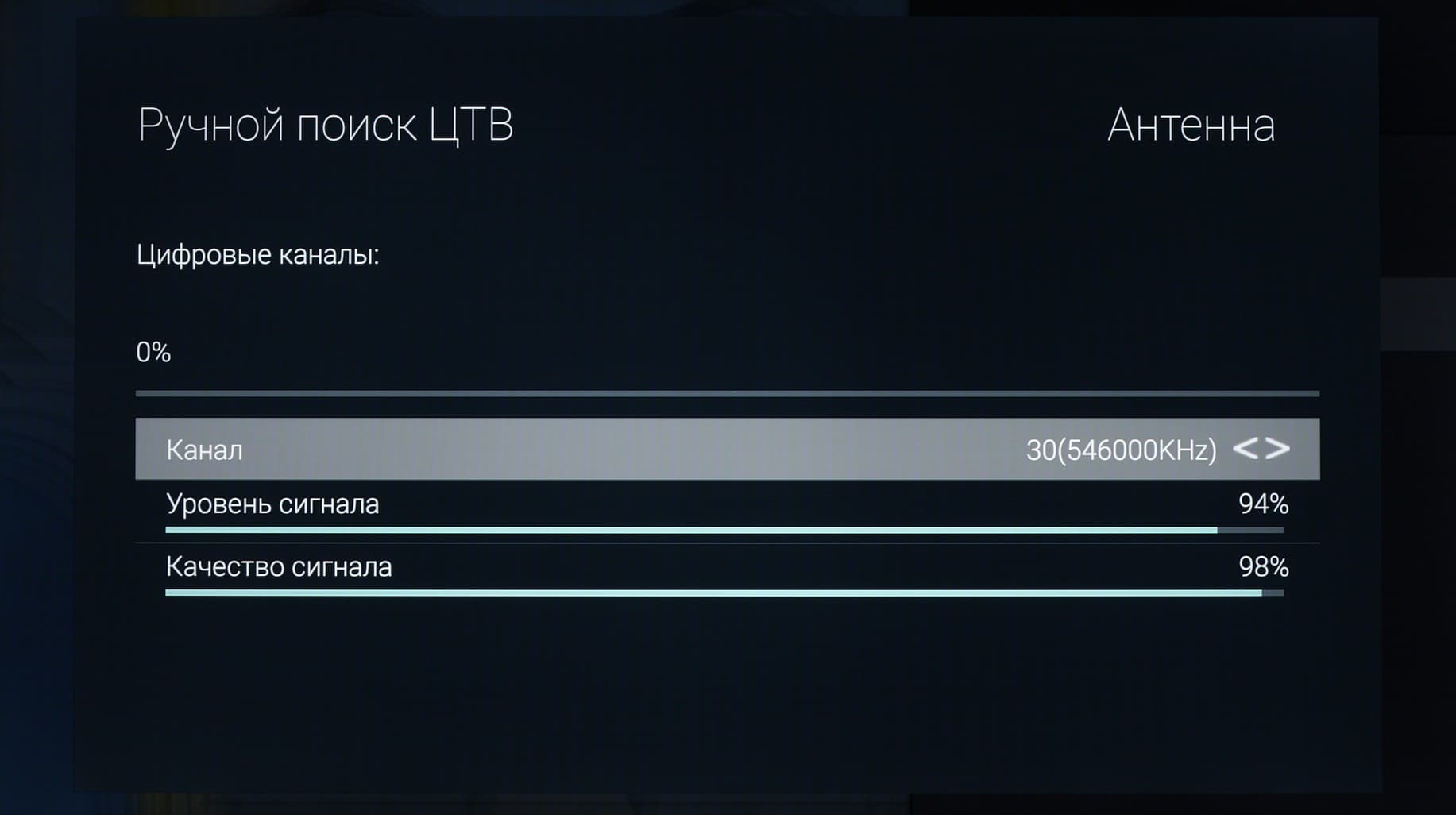 Данная модель, помимо спутникового тюнера, оснащена тюнером, принимающим аналоговый и цифровой сигнал эфирного и кабельного вещания. Качество приема цифровых каналов на дециметровую антенну, закрепленную на стене здания (почти прямая видимость в направлении на телевышку в Бутово, расположенную на расстоянии 14 км), было на высоком уровне — без проблем удалось найти все ТВ-каналы и три радиоканала в трех мультиплексах.