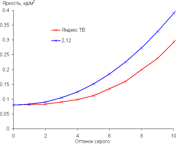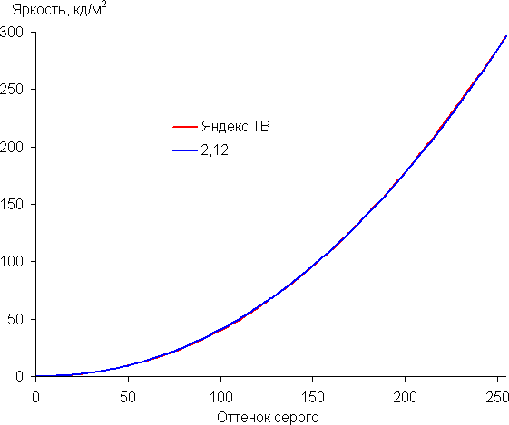 Аппроксимация полученной гамма-кривой дала показатель 2,12, что немного ниже стандартного значения 2,2. При этом реальная гамма-кривая мало отклоняется от аппроксимирующей степенной функции: