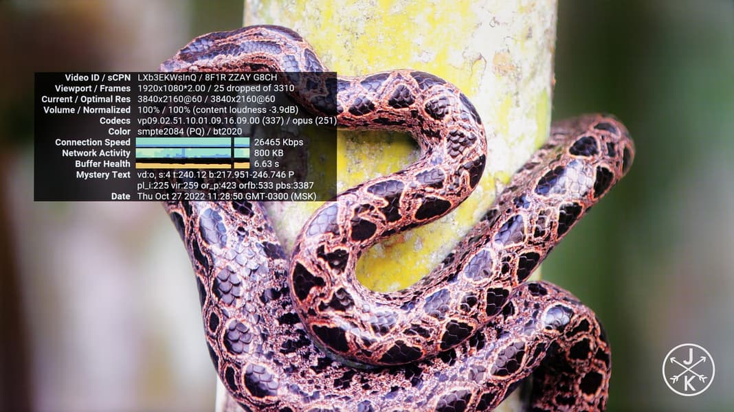 Тестирование воспроизведения видеофайлов проводилось в основном с помощью плеера MX Player. Поддерживается аппаратное декодирование звуковых дорожек как минимум в форматах AAC, AC3, MP2, MP3, OGG (Vorbis) и PCM. Дорожки DTS и WMA — только программно. Большинство из опробованных современных файлов высокого разрешения без проблем воспроизводились в режиме аппаратного декодирования, вплоть до вариантов H.265 с разрешением 4К при 60 кадр/с. В MX Player можно смотреть копии дисков Blu-ray, но только по файлам. Впрочем, при этом все равно можно переключаться между звуковыми дорожками и субтитрами, даже если их очень много. Поддерживается воспроизведение видеофайлов HDR (HDR10 и HLG, контейнеры MP4, TS, WebM и MKV, кодеки AV1 (цвета чуть бледноваты, воспроизводит встроенный плеер), VP9 и H.265), а в случае файлов с 10 бит на цвет, согласно визуальной оценке, градаций оттенков больше, чем у 8-битных файлов.