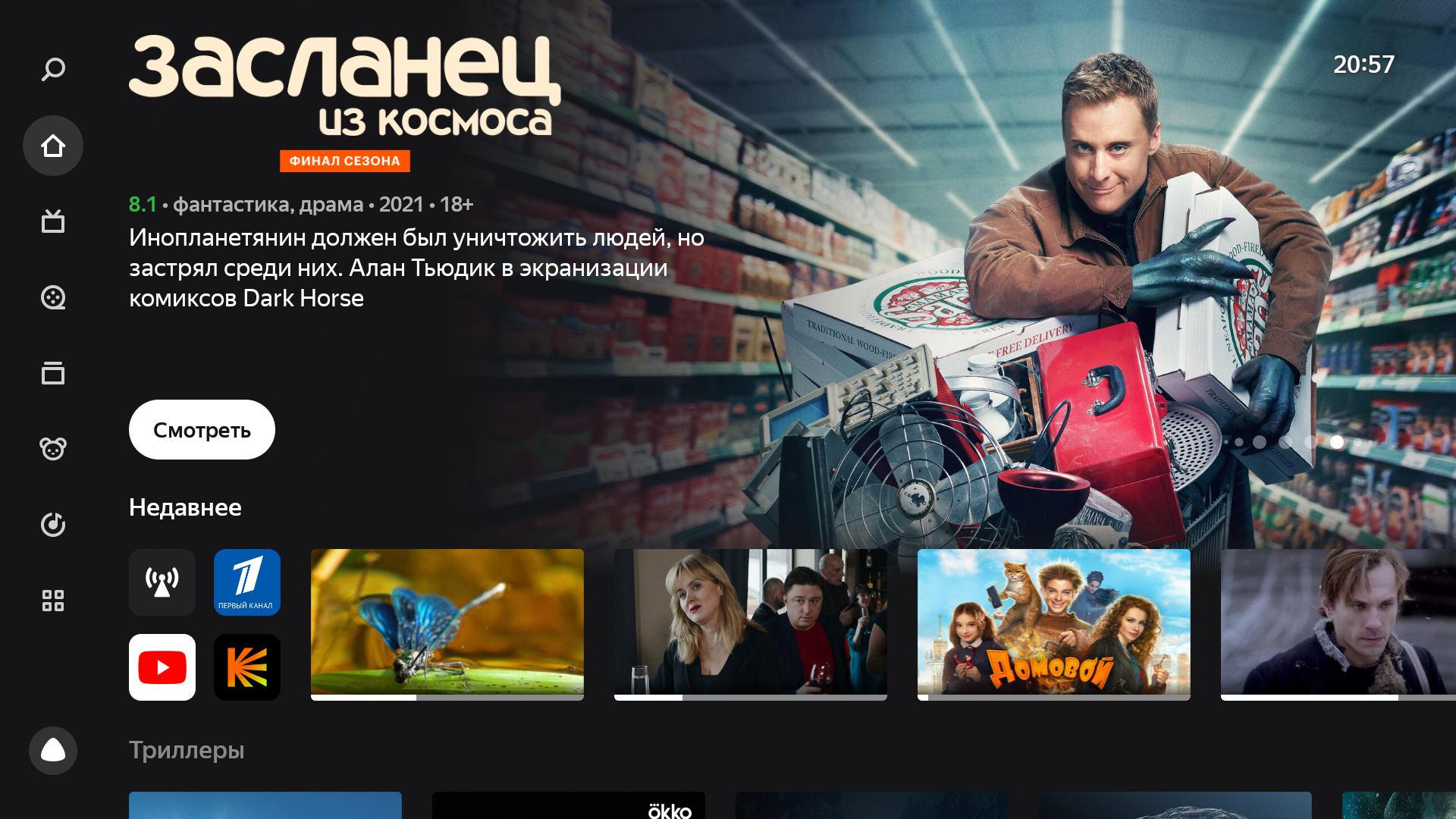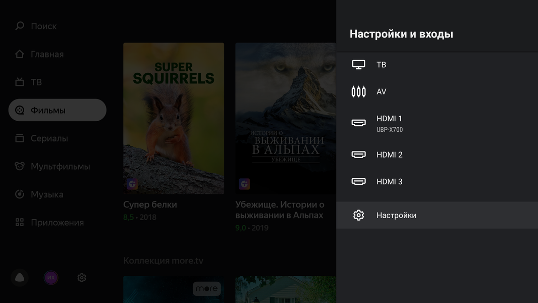 Разработчики Яндекс.ТВ разумно решили не ошеломлять зрителя какими-то изысканными и навороченными интерфейсами. В итоге домашняя страница Яндекс.ТВ напоминает привычный интерфейс YouTube в версии для Smart TV, а меню с настройками осталось в оригинальном для Android TV виде.