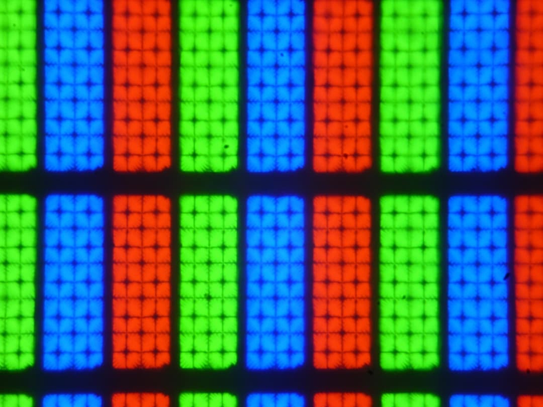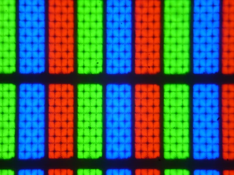Субпиксели трех цветов (красного, зеленого и синего) поделены на несколько участков с доменами в различающейся ориентации. Такое устройство в принципе способно обеспечить хорошие углы обзора, чему способствует вариация ориентации ЖК в доменах. Отметим, что никакого видимого «кристаллического эффекта» (микроскопической вариации яркости и оттенка) в данном случае нет.