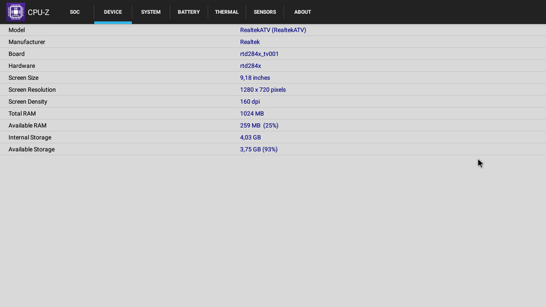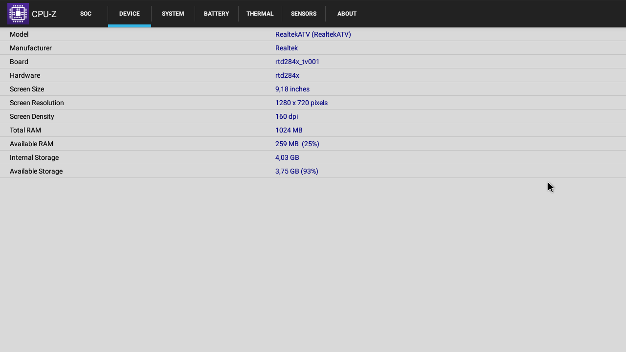 Программной платформой для этого ТВ служит Android TV, которая является наследницей Google TV. Основана установленная версия Android TV на ОС Android 7.1. Из режима ожидания включается ТВ быстро. Если был перерыв в питании или ТВ был выключен, то система перезапускается заново, а это уже занимает гораздо больше времени. Конфигурацию аппаратной части поясняют данные программы CPU-Z: