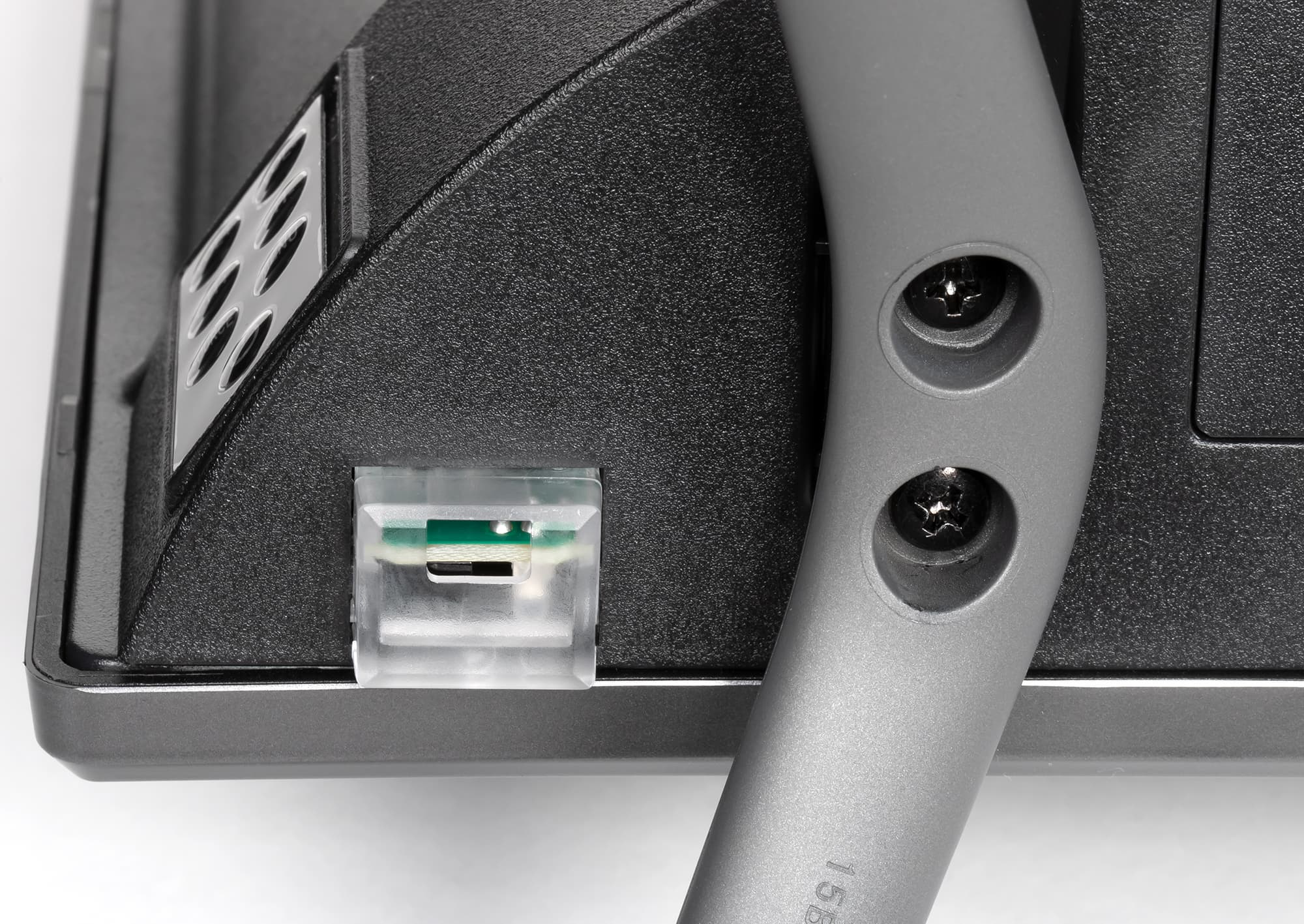 Альтернативный способ установки телевизора без использования штатных ножек — крепление телевизора на стену с помощью кронштейна под монтажные отверстия VESA 200×100 мм (алюминиевые резьбовые гнезда вделанные в пластиковый кожух — не очень надежная конструкция).
