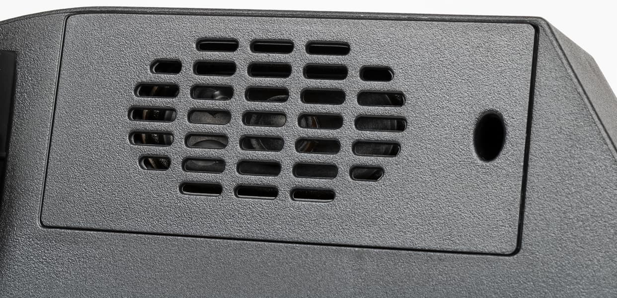 За двумя решетками на нижнем торце можно разглядеть громкоговорители с вытянутыми диффузорами.