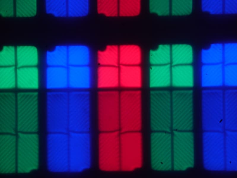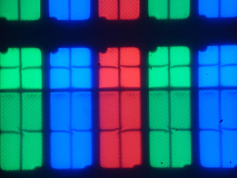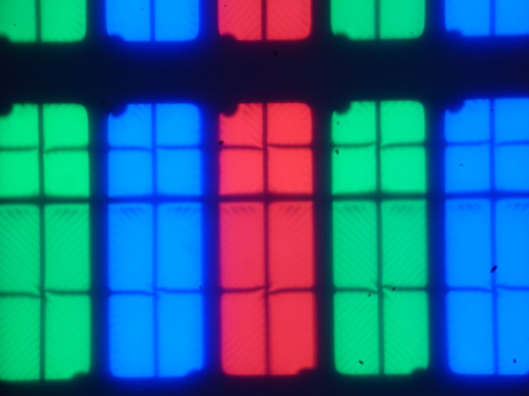 Субпиксели трех цветов (красного, зеленого и синего) поделены на две различающиеся по площади и независимо управляемые области, каждая из которых разделена на четыре участка с доменами в различающейся ориентации. Такое сложное устройство в принципе способно обеспечить широкий динамический диапазон по количеству оттенков, так как с ростом яркости области включаются последовательно, и хорошие углы обзора, чему способствует вариация ориентации ЖК в доменах. Отметим, что никакого видимого «кристаллического эффекта» (микроскопической вариации яркости и оттенка) в данном случае нет.
