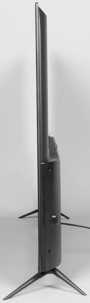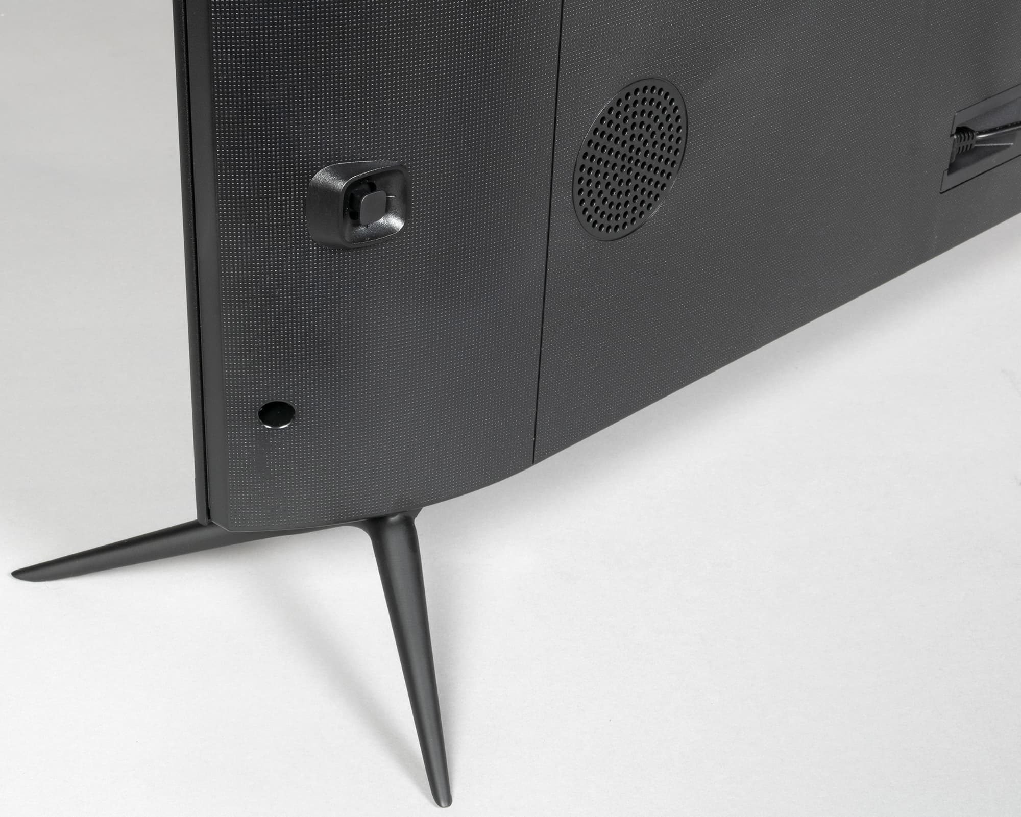 Опираются ножки на противоскользящие накладки из упругого пластика. Жесткость конструкции соответствует весу телевизора. Телевизор стоит устойчиво, без видимого наклона. Расстояние между крайними точками ножек 128 см, что на 5 см больше ширины самого ТВ, а это иногда может снижать количество возможных вариантов установки телевизора.