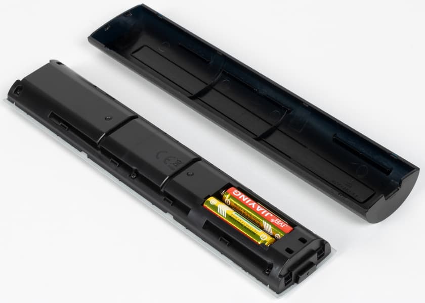 Пульт полноразмерный (208×44×22 мм) и довольно увесистый (64 г с комплектными элементами питания).