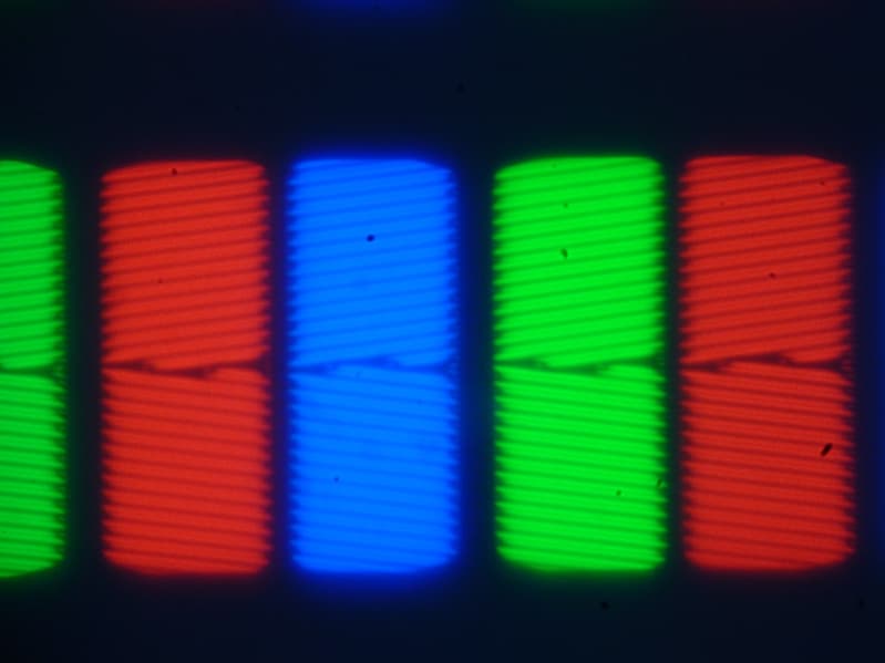 Выявленные характеристики экрана подтверждают, что в данном телевизоре установлена матрица типа IPS. Микрофотографии не противоречат этому — характерная для IPS структура субпикселей видна (черные точки — это пыль на матрице фотоаппарата):