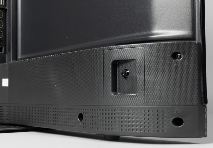 Также в небольшой нише на кожухе сзади в нижней части близко к левому торцу есть 5-позиционный джойстик (отклонение по четырем направлениям и нажатие), с помощью которого можно очень ограниченно управлять телевизором без пульта ДУ.
