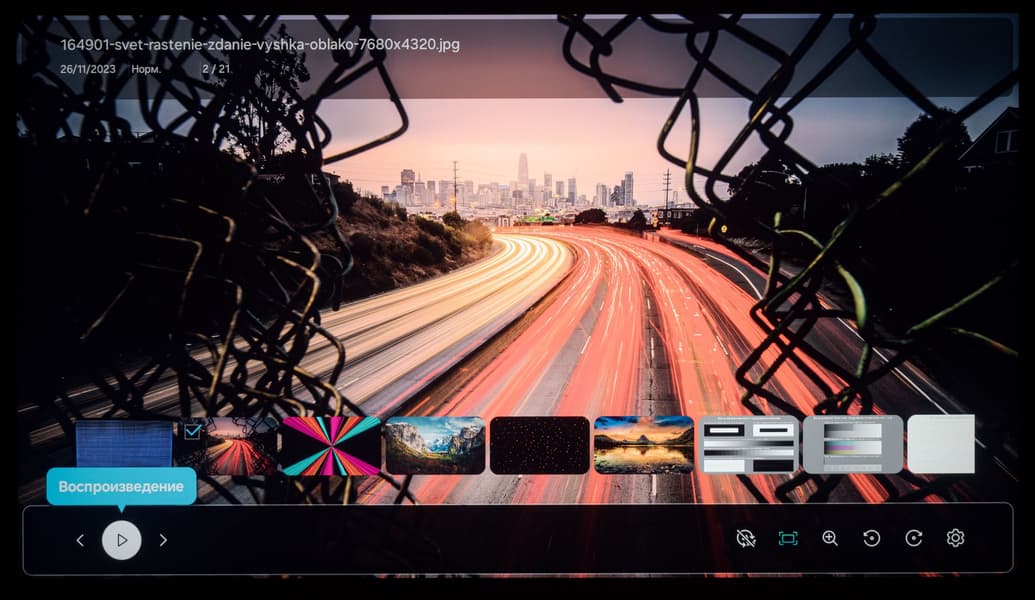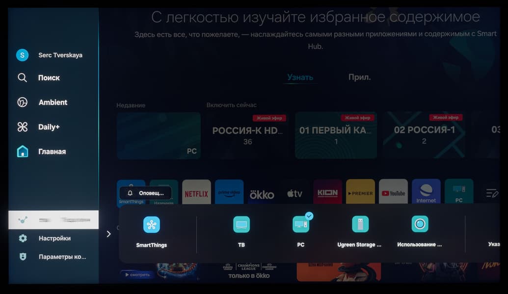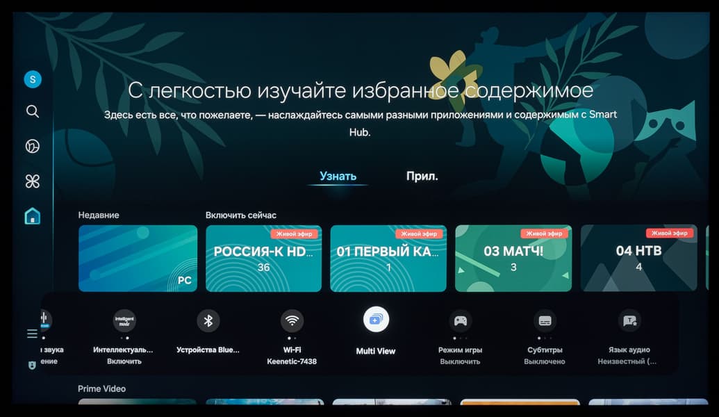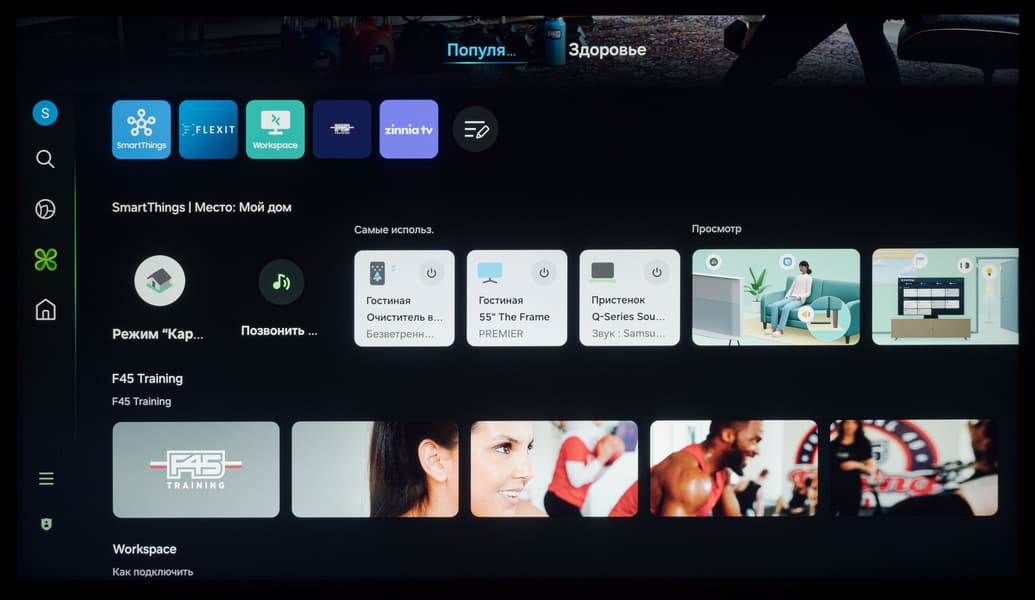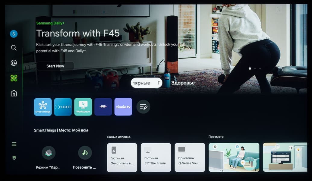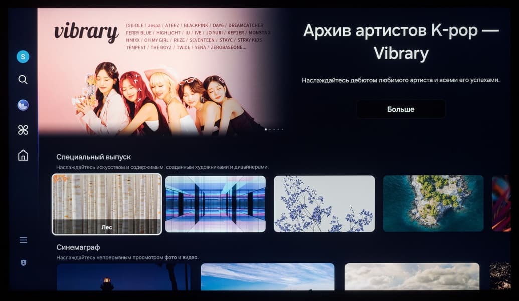 При этом в самой системе Tizen визуально рабочее разрешение оболочки и всех ее элементов ниже нативного, но тут без претензий — это вполне обычная практика для телевизоров любого уровня. На расстоянии в 1,5 метра от экрана и дальше потребитель точно не будет разочарован качеством изображения среды ОС.