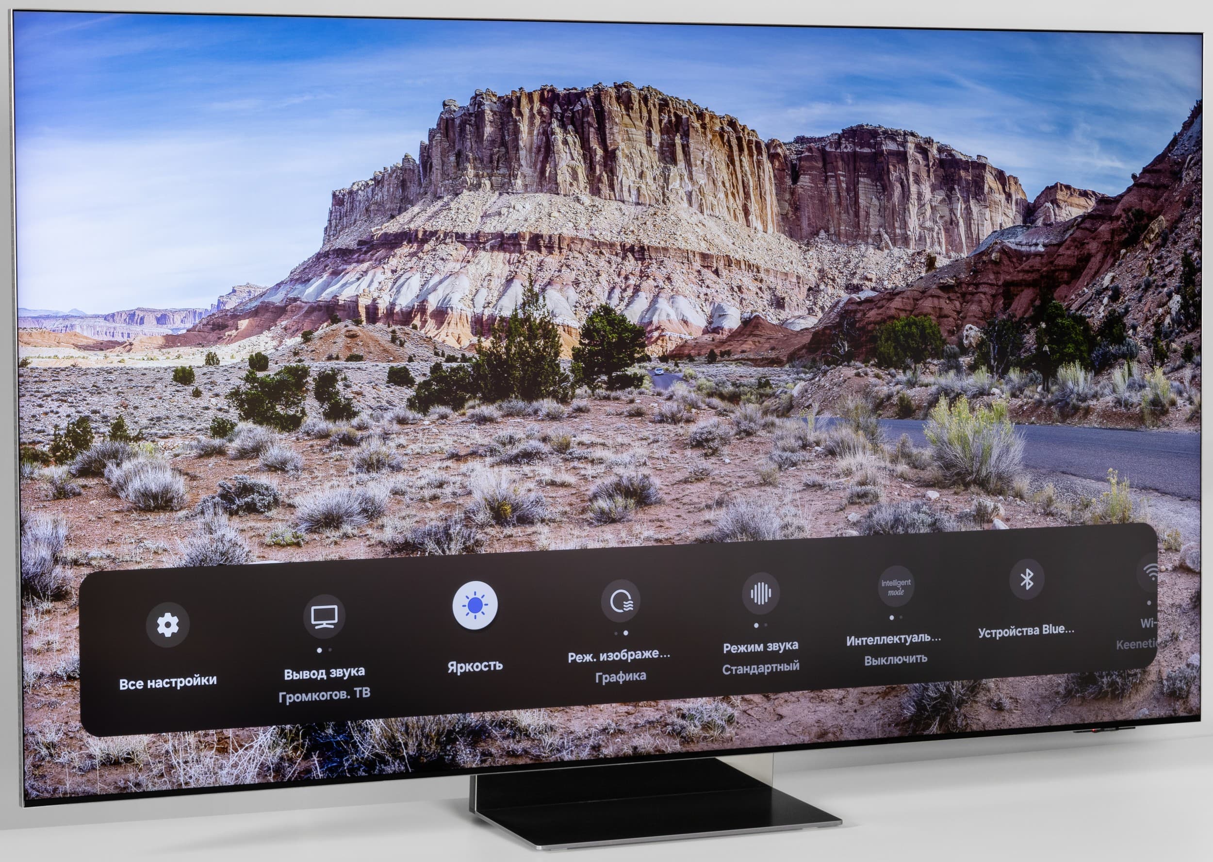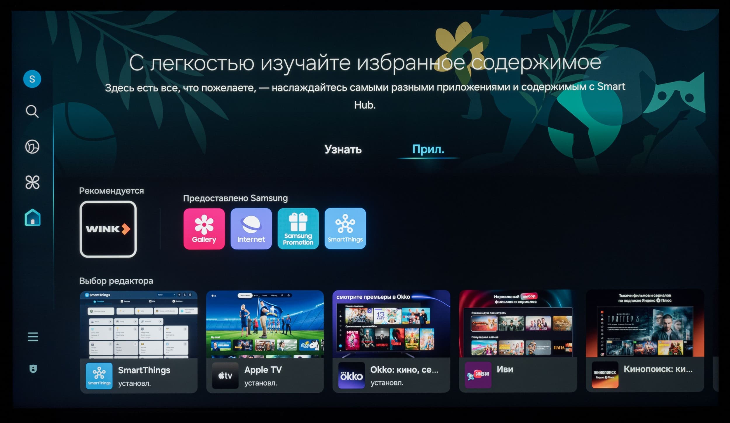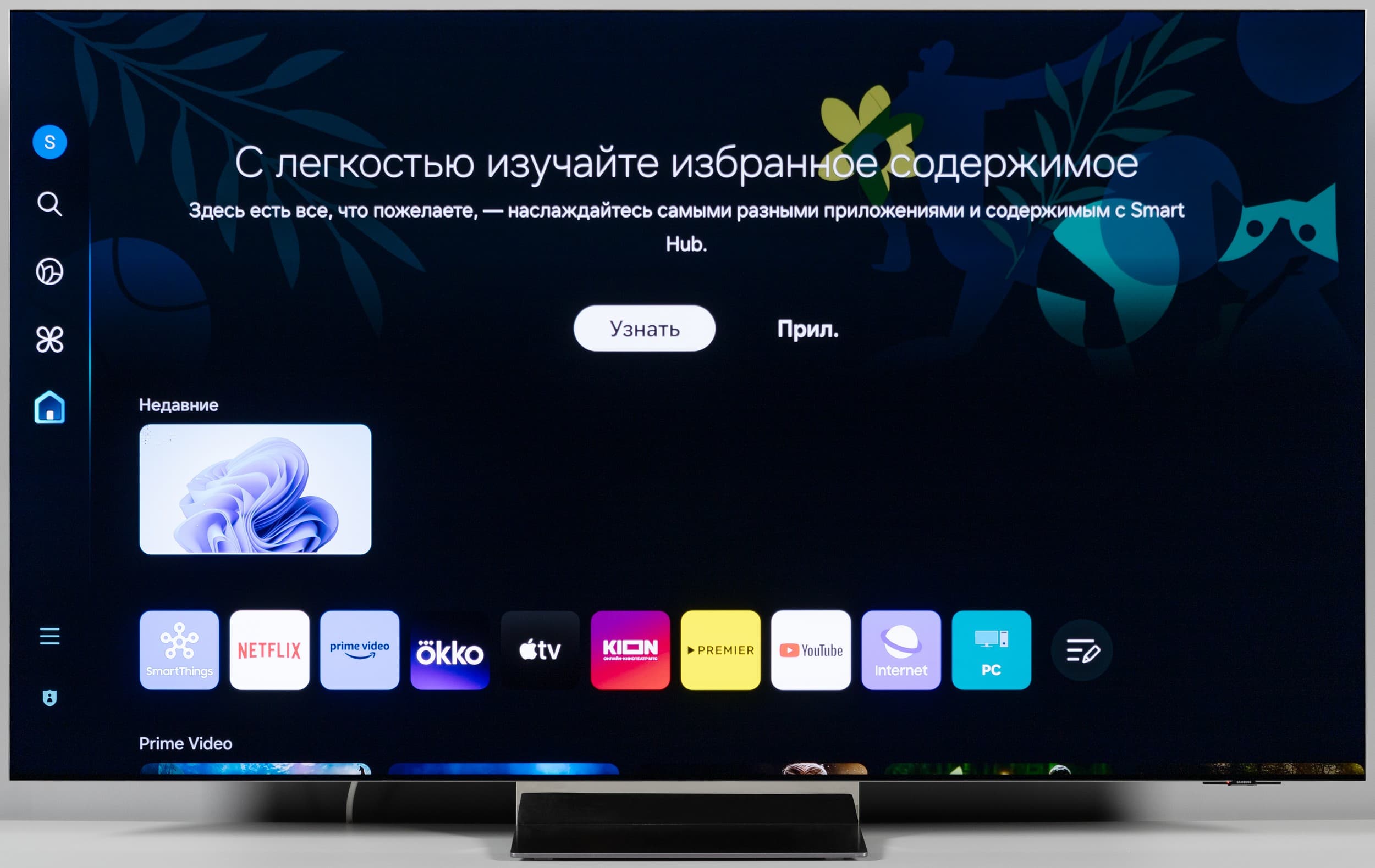 При этом в самой системе Tizen визуально рабочее разрешение оболочки и всех ее элементов ниже нативного, но тут без претензий — это вполне обычная практика для телевизоров любого уровня. На расстоянии в 1,5 метра от экрана и дальше потребитель точно не будет разочарован качеством изображения среды ОС.