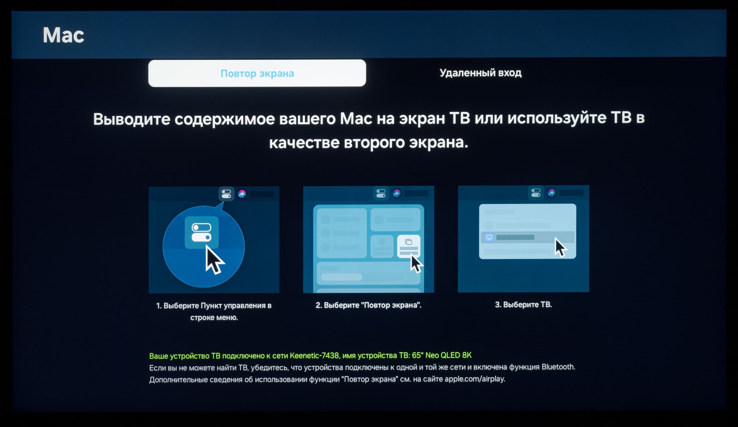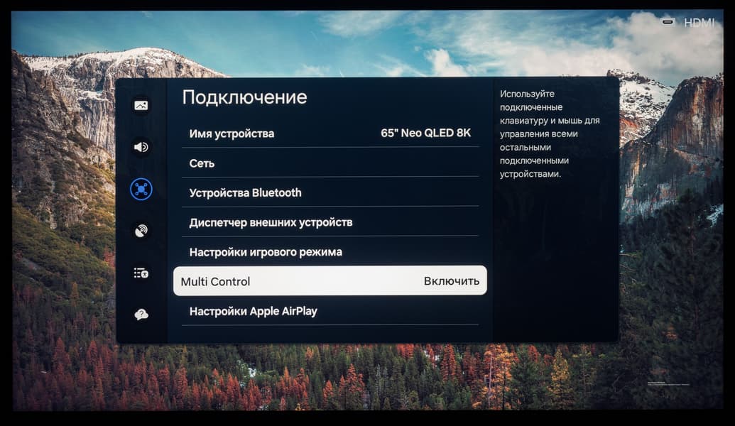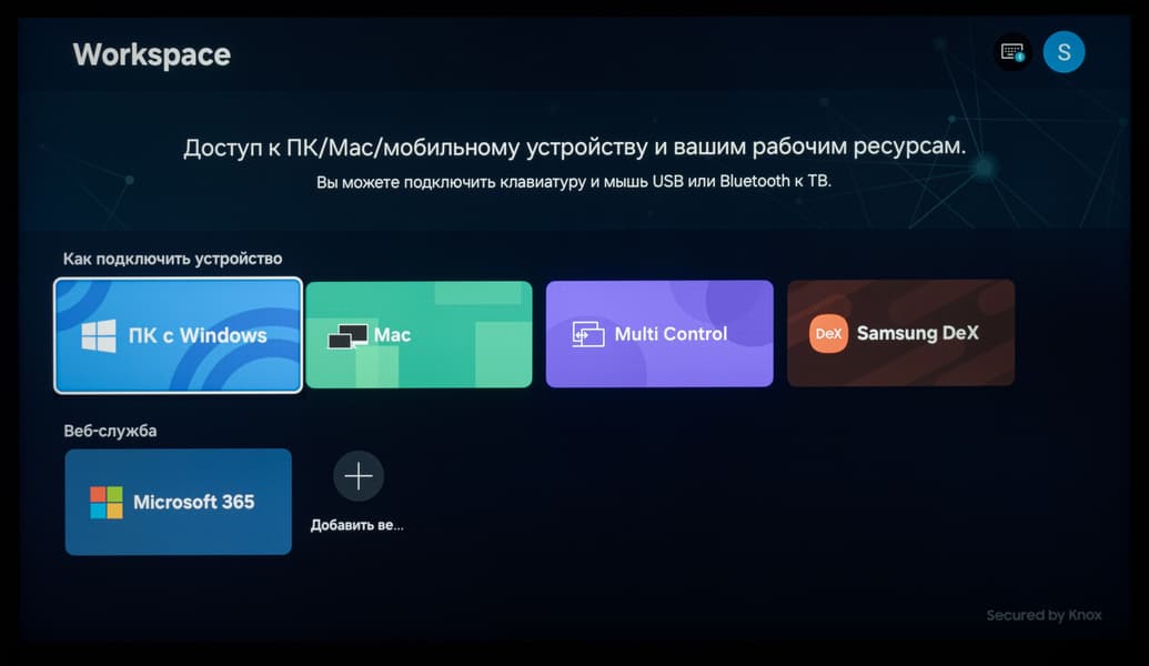 Поддерживаются устройства Samsung с функцией Dex и режим Multi Control для управления поддерживаемыми мобильными устройствами бренда и самим ТВ с помощью одного комплекта клавиатуры и мышки. Также есть поддержка наиболее стабильного и качественного протокола беспроводной передачи мультимедийного контента Apple AirPlay 2. Напомним, для работы обеих функций устройства должны находится в пределах одной беспроводной Wi-Fi-сети.