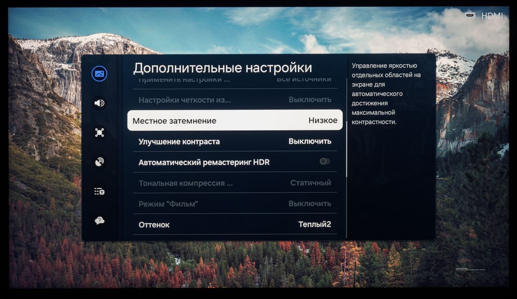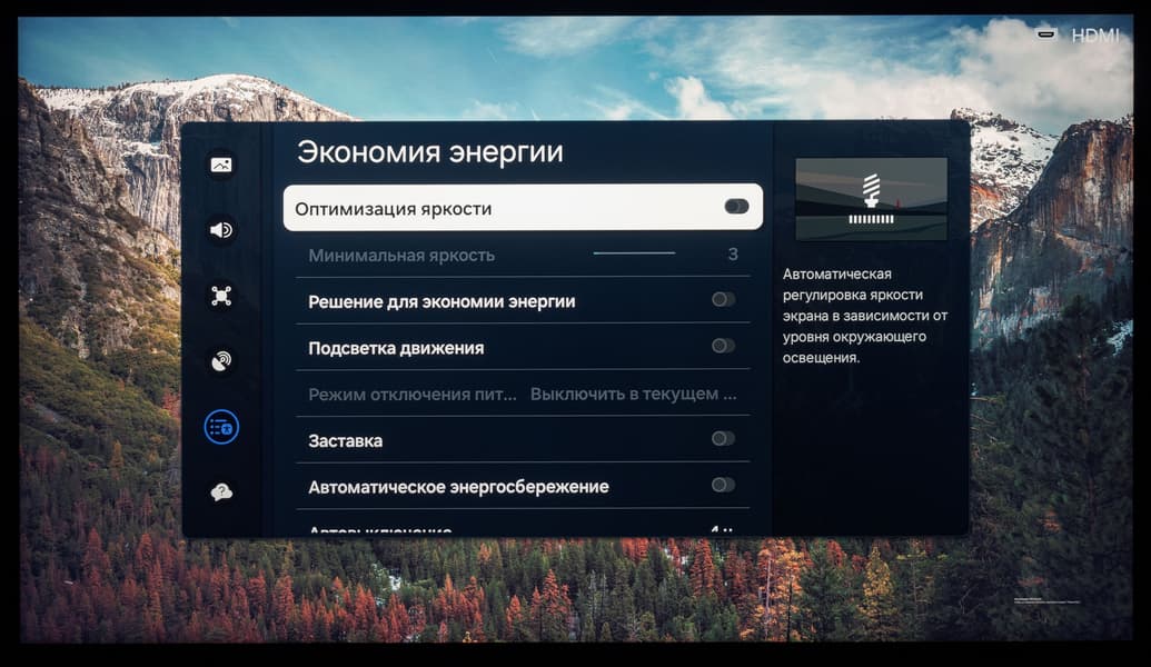 - Излишняя самостоятельность электронной начинки: телевизор постоянно восстанавливает эко-режим и автояркость и не дает полностью отключить работу локальной системы управления подсветкой («местное затемнение»)