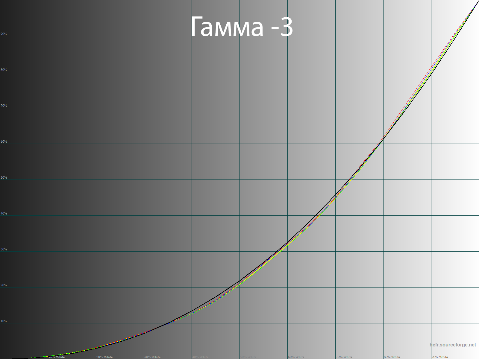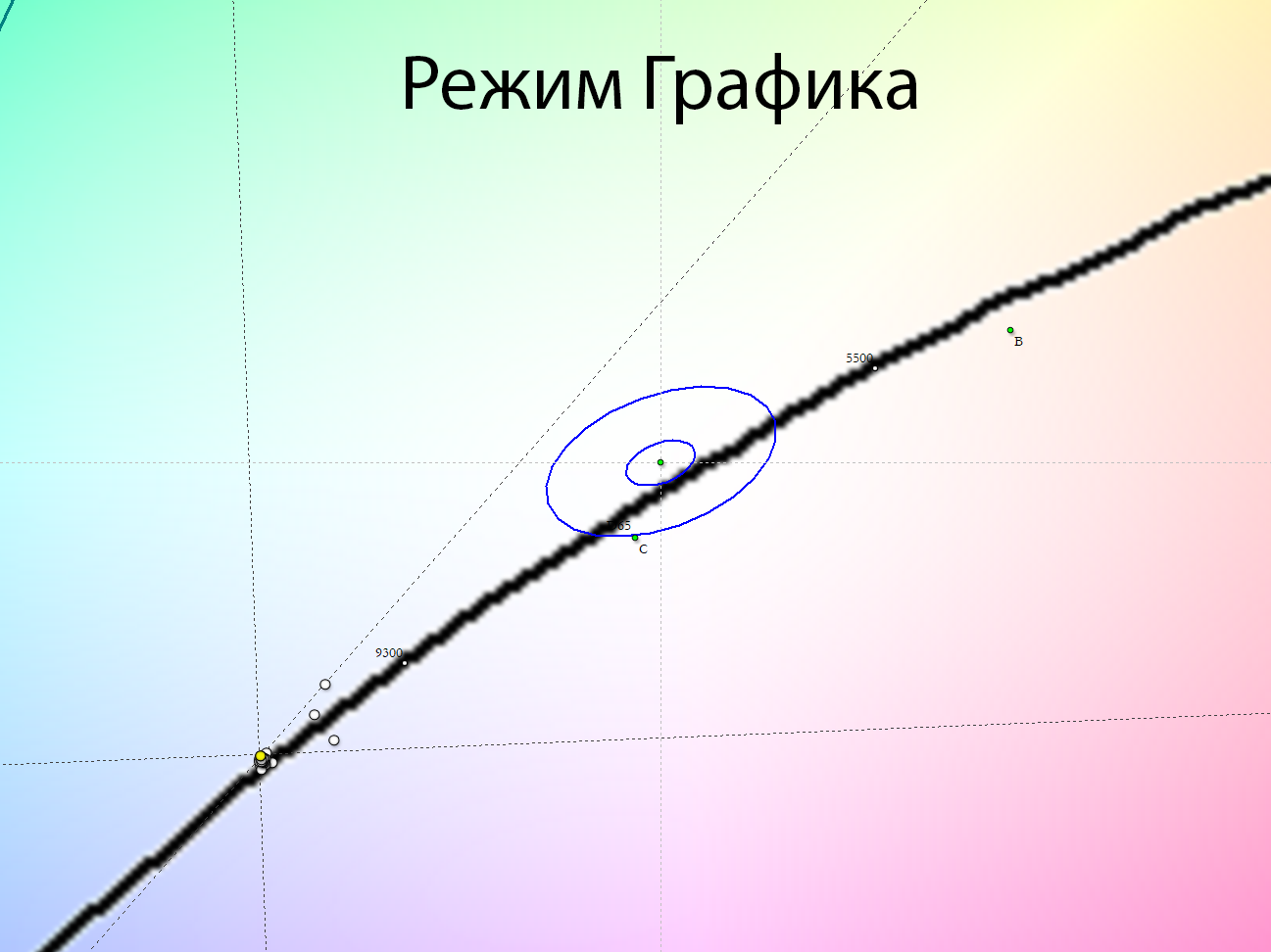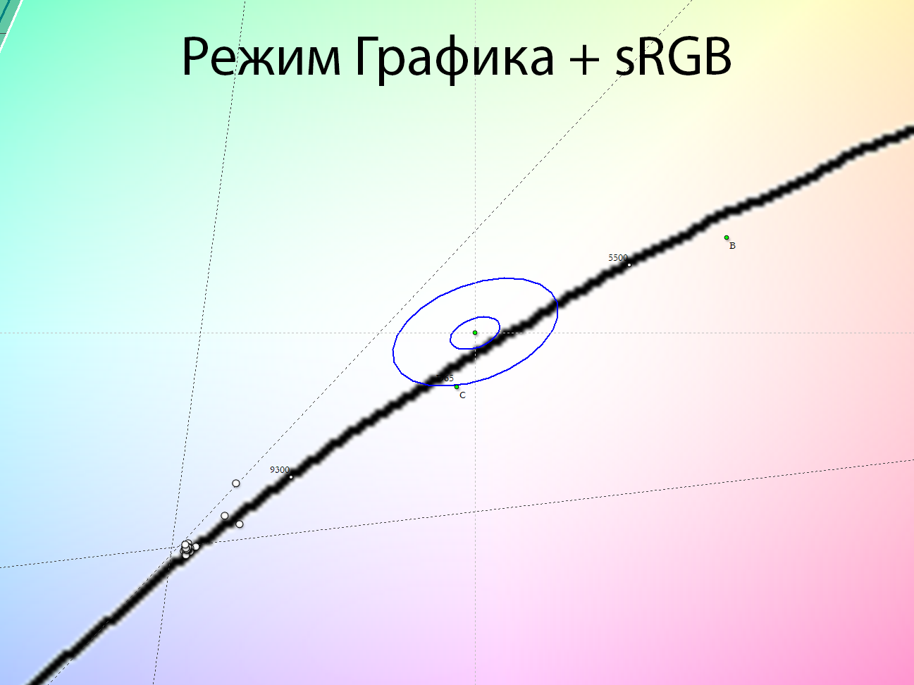 После настройки и калибровки точка белого пришла в абсолютную норму, увеличилась стабильность ЦТ оттенков серого. Среднее значение гаммы в этом случае составило 2,18.