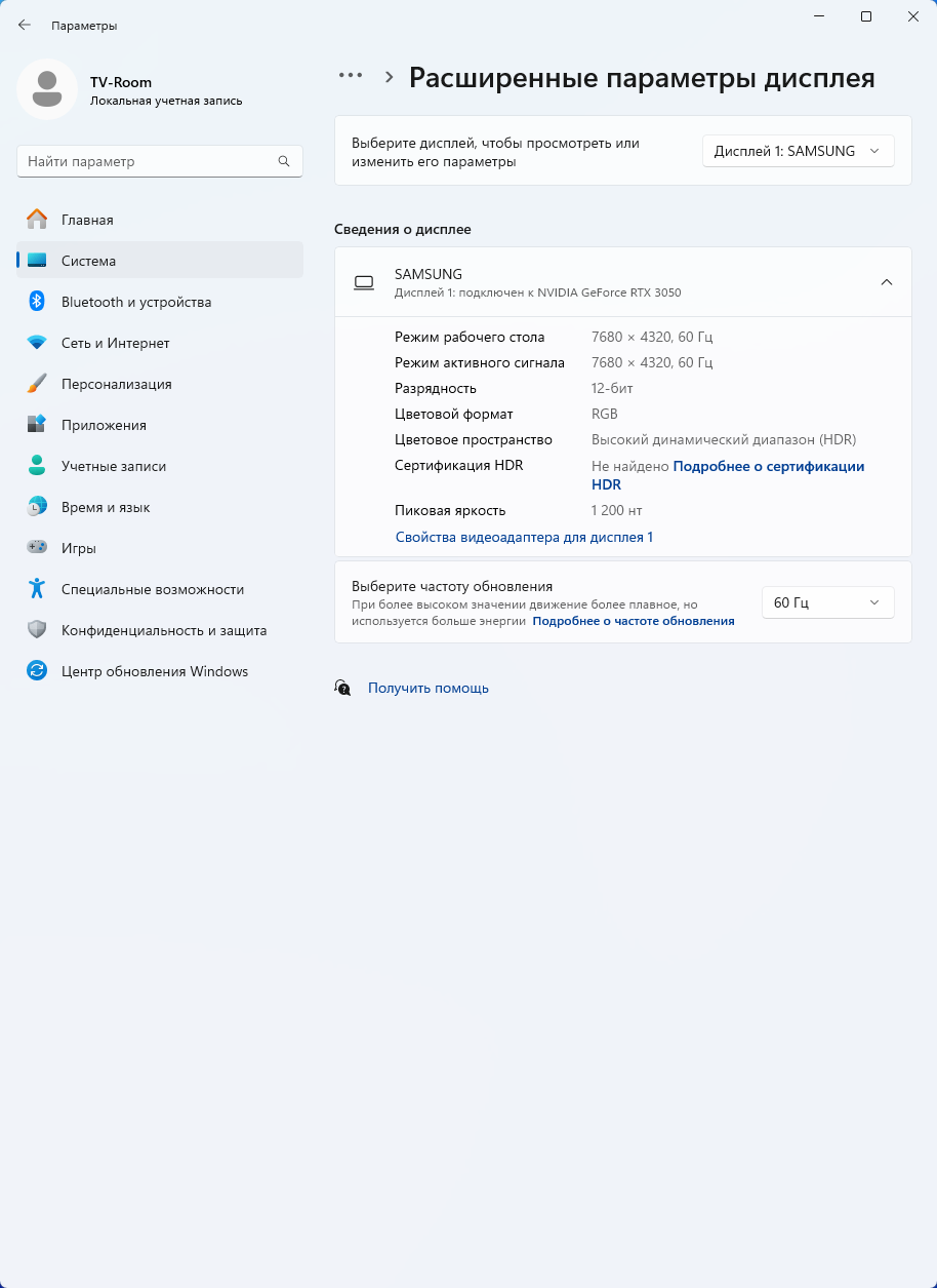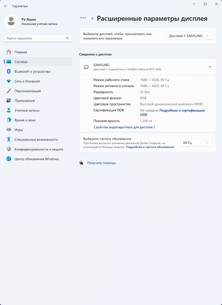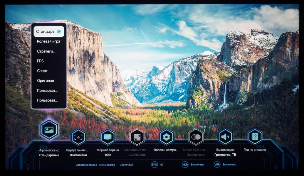 Для рассматриваемого решения производитель не указывает время отклика, но отмечает возможность работы в режиме 4K на частоте вертикальной развертки до 240 Гц после активации «игрового режима». При работе же в нативном разрешении стандарта 8K базовая частота составляет классические 60 Гц.