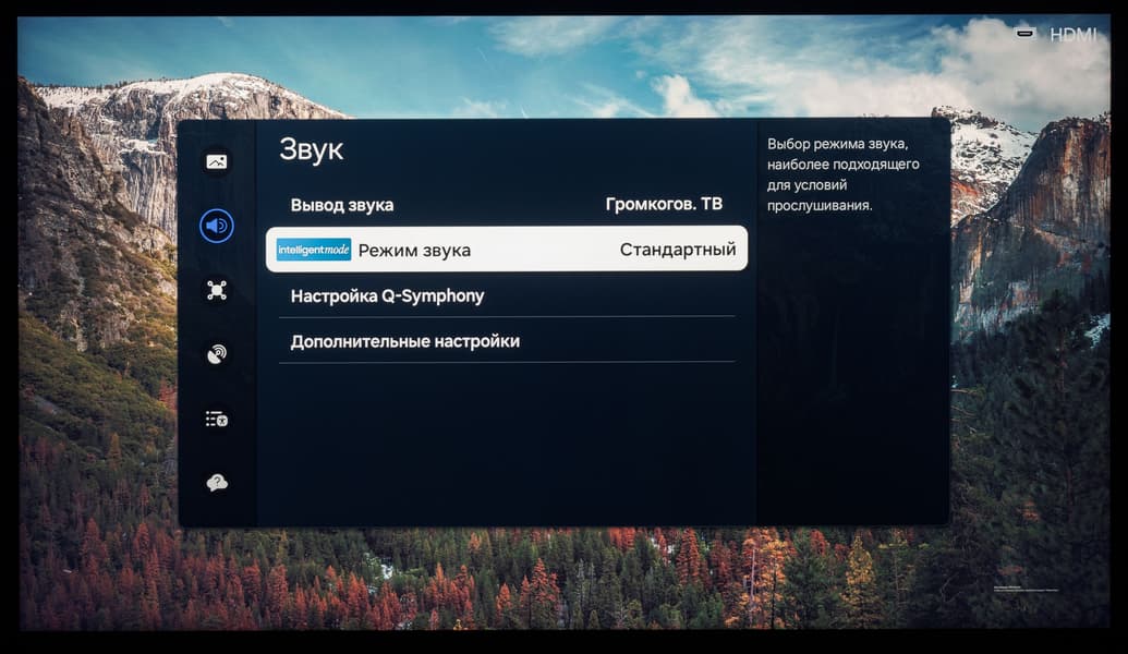 - Функция Q-Symphony и поддержка Dolby Atmos — обеспечивают одновременное и гармоничное пространственное звучание встроенной акустической системы телевизора и отдельного саундбара