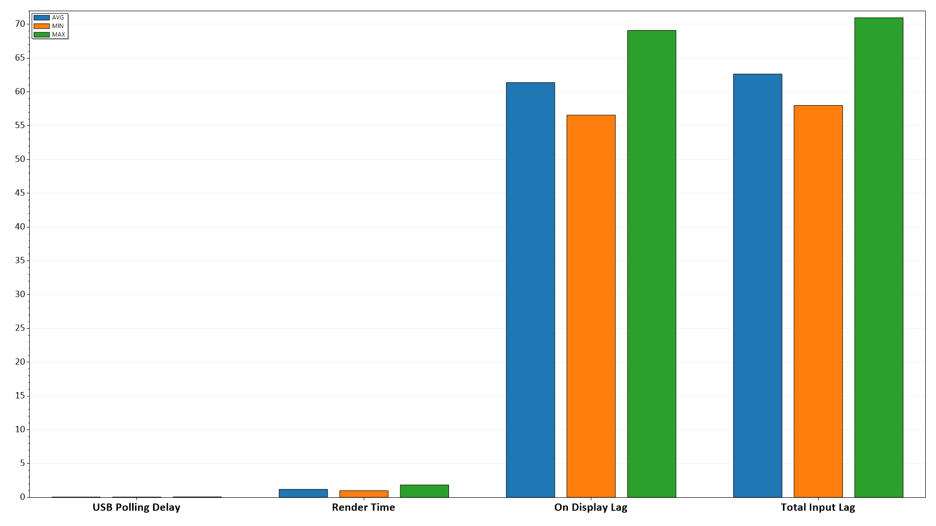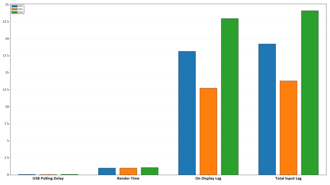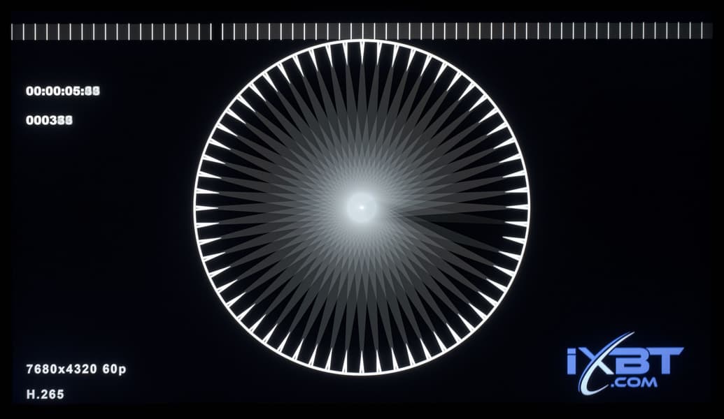 Также мы определяли полную задержку вывода от переключения страниц видеобуфера до начала вывода изображения на экран. В итоге при подключении по HDMI задержка вывода изображения в случае сигнала 7680×4320 и 60 Гц составила порядка 61 мс, а после активации игрового режима уменьшилась до 40 мс.