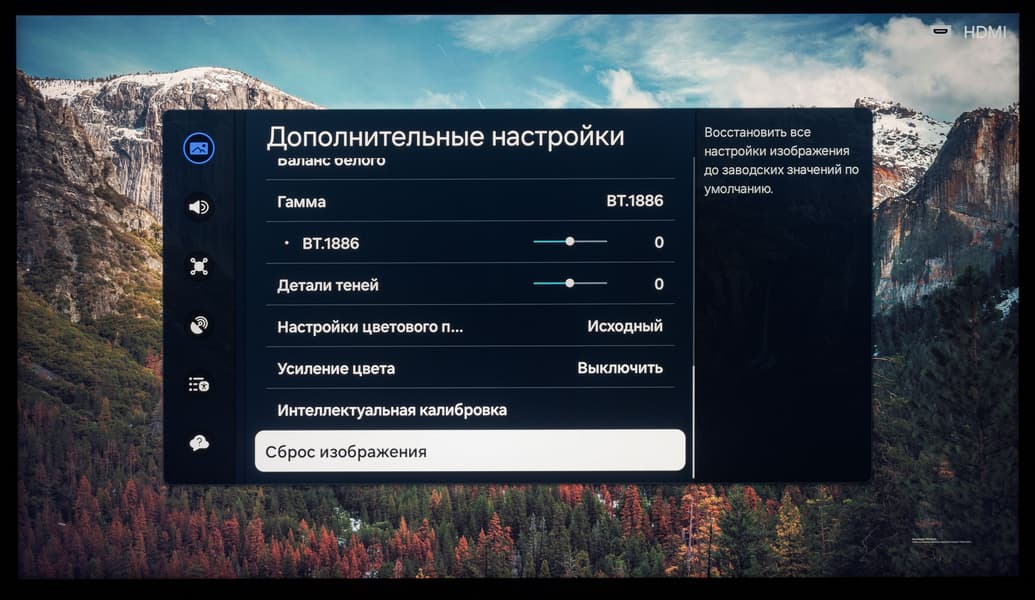 Теперь отдельно пройдемся по режимам настройки гаммы. Среди доступных пресетов по умолчанию для SDR выбран стандарт BT.1886. Также доступен более известный вариант гаммы 2,2, но для этого режима отключена ручная корректировка, а сам по себе он практически не отличается по результату от BT.1886.