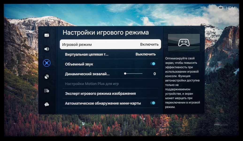 - Поддержка функции ALLM и низкая задержка вывода (input-lag) при работе в режиме 4K UHD на частотах 120—240 Гц после активации «игрового режима»