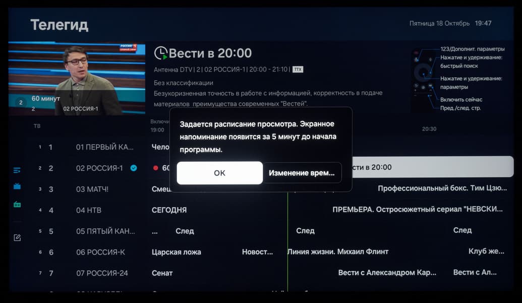 У телевизора есть поддержка управления по HDMI — функция HDMI CEC. В нашем случае она прекрасно работала с ТВ-приставкой Xiaomi Mi Box S и ее стандартным пультом ДУ. Можно сделать и обратное действие, когда пультом самого ТВ параллельно активируется, управляется и выключается сама приставка.