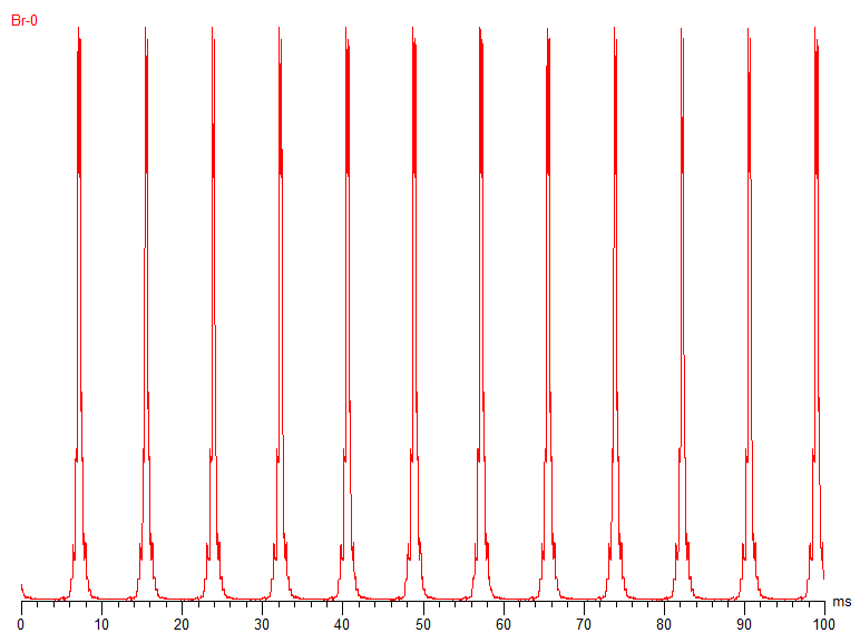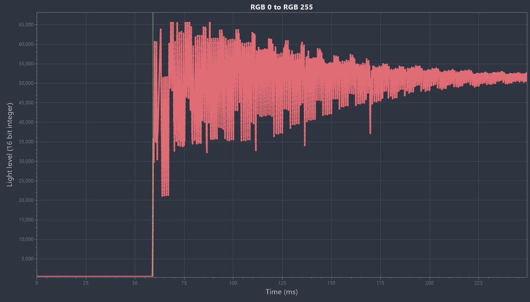 Снижает четкость использование полноценной ШИМ-модуляции на частоте 120 Гц с дополнительными пиками на 960 Гц и характерными для подсветки Mini-LED постоянными пульсациями. Всё это осложнило измерения времени отклика (два примера таких измерений с помощью разного оборудования и ПО продемонстрированы выше), а потому в случае с новинкой Samsung мы остались без конкретных цифр.