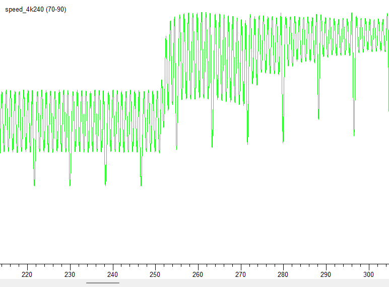 Далее мы перешли к режимам в разрешении 3840×2160 пикселей, оставив «игровой режим» включенным. В этом случае на частоте 120 Гц задержка приблизилась к 50 мс, а последующий переход к максимальным 240 Гц позволил получить среднее значение на уровне 18 мс. Во всех режимах работы телевизор Samsung показал высокие результаты, проблем в играх у конечного потребителя точно не возникнет.
