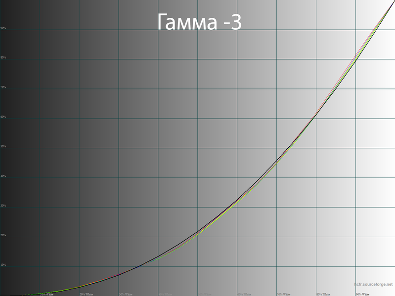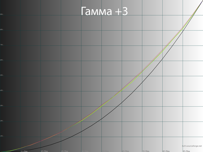 После такой настройки мы получили максимально правильный баланс RGB, более высокое соответствие гаммы необходимому референсу, различимость в светах и тенях (без излишеств) и адекватную насыщенность во всем диапазоне. Все остальные — небольшие — коррекции были выполнены с помощью соответствующих правок сигнала видеокарты через ее собственный LUT.