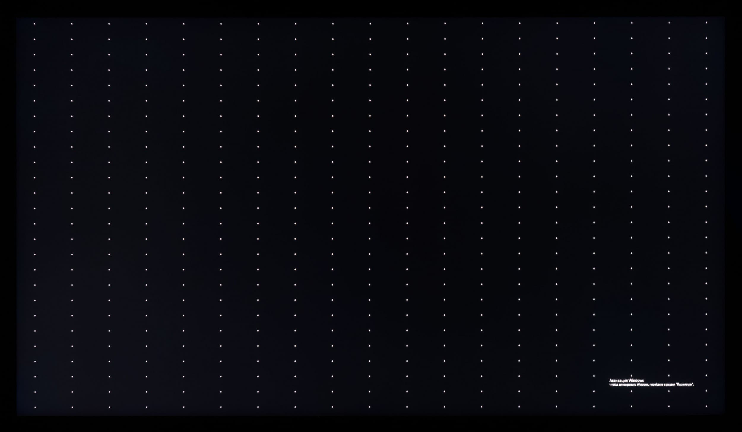 - Хорошая различимость источников подсветки Mini-LED по всему полю экрана, а также некоторые дефекты равномерности на определенных темных заливках