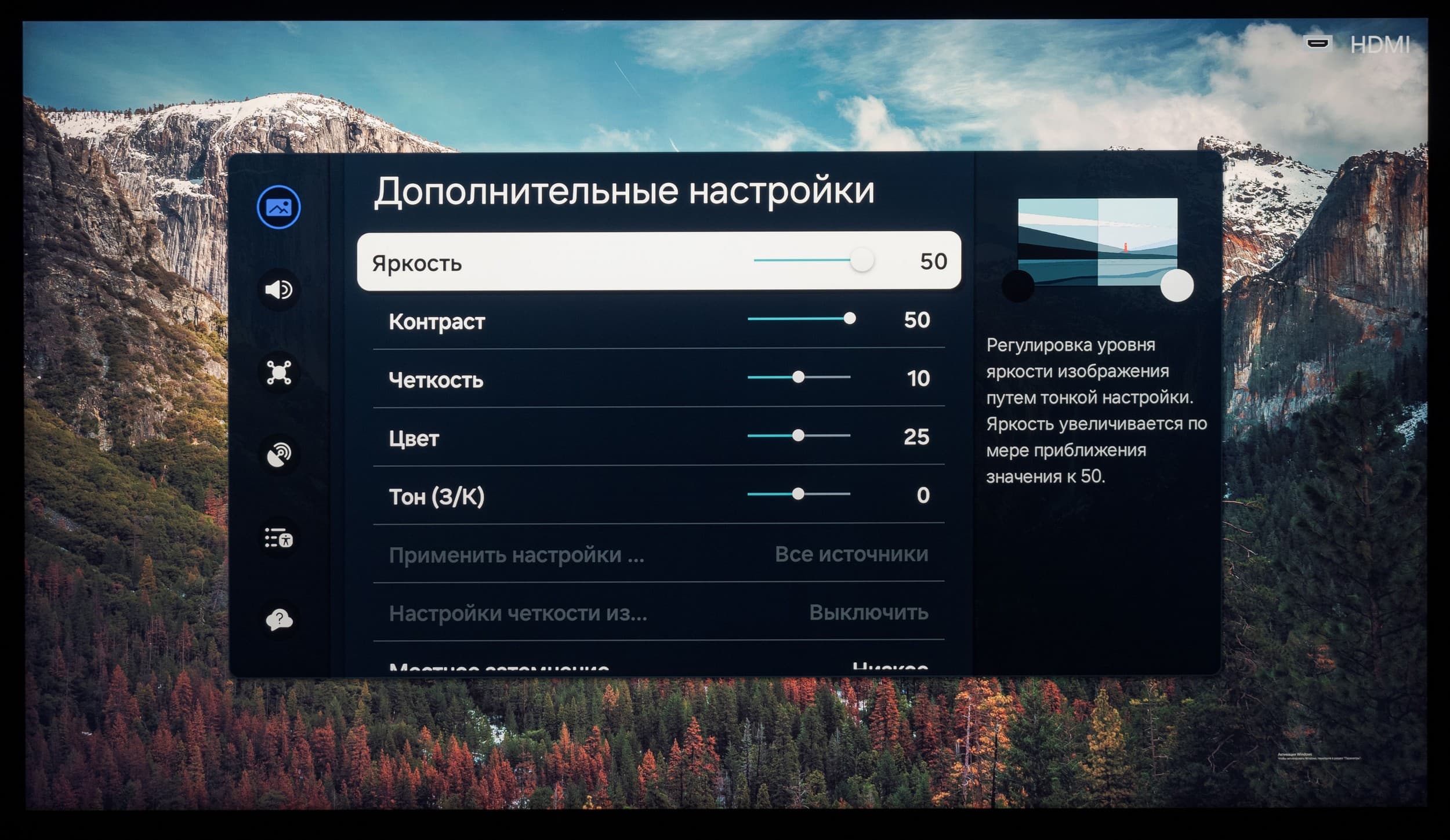 - Высокая эффективность работы встроенного AI-апскейлера — хорошо себя показывает на источниках от 1080i (не поддерживается при подключении к ПК и в некоторых приложениях)