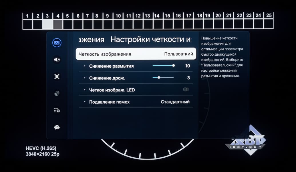Изученная 65-дюймовая модель телевизора Samsung QLED 8K QN900D является премиальным решением бренда в активно развивающимся сегменте рынка и будет интересна покупателям, пребывающим в постоянной гонке за высокой плотностью пикселей и предпочитающим просмотр телевизора подобного размера на расстоянии около 2-2,5 метров. Это именно тот случай, когда значительный рост физического разрешения в сочетании с продвинутыми AI-алгоритмами могут создать «вау-эффект»... или не создать. У этой вероятности много переменных, как объективных (изначальное качество видеоматериала, расстояние пользователя до экрана, настройки изображения), так и субъективных (индивидуальное визуальное восприятие, четкость зрения и даже настроение конкретного пользователя).
