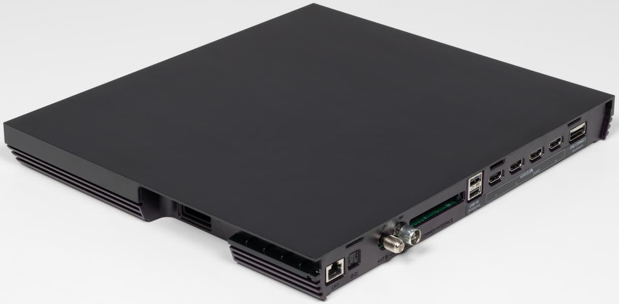 Вынос фактически всех разъемов для подключения внешних устройств и питания в отдельный модуль, подключаемый к телевизору одним кабелем, предоставляет пользователю большую свободу по установке телевизора.