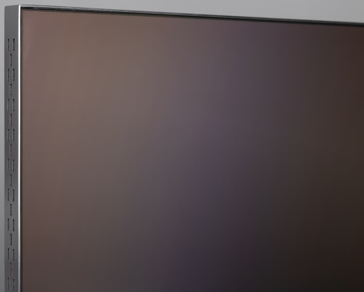 По самому низу по плоскости экрана идет узкая (примерно 4-5 мм) полоска из темного пластика. Внешняя поверхность матрицы полуматовая и относительно устойчивая к повреждениям. Эффективный антибликовый фильтр (по словам производителя — второй версии) снижает яркость отраженных объектов до такой степени, что комфортность просмотра сохраняется до того момента, пока прямо напротив экрана нет очень ярких точечных источников света.