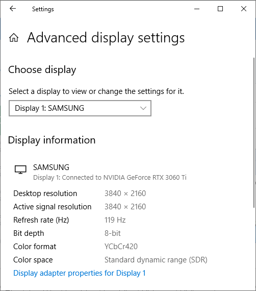 При подключении к компьютеру вывод изображения в разрешении 3840 на 2160 пикселей мы получили с кадровой частотой вплоть до 120 Гц включительно, но при такой частоте вывод идет в режиме цветоразностного сигнала со снижением цветовой четкости.