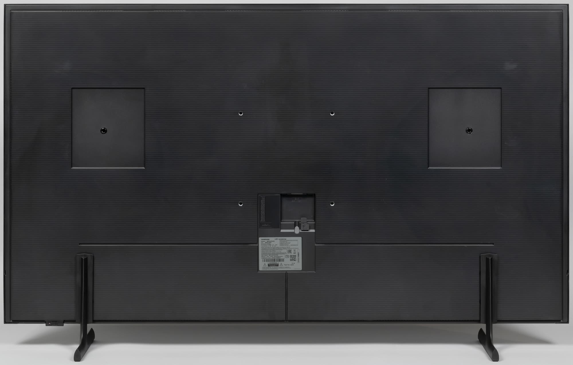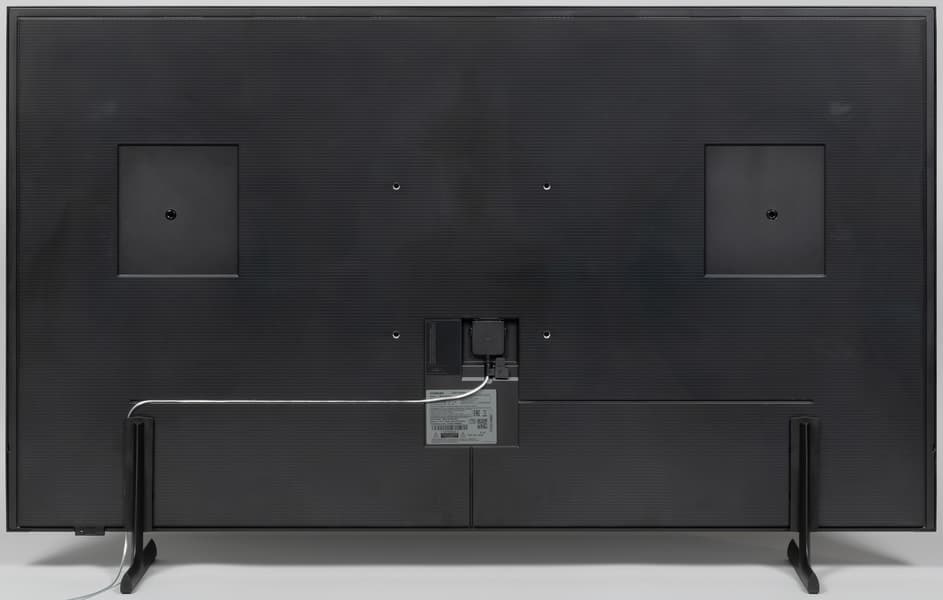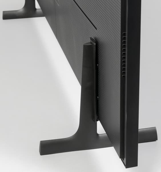Воздух для охлаждения электроники проходит через решетки на торцах чуть выступающего назад кожуха. Телевизор имеет полностью пассивное охлаждение. Где-то за решетками снизу расположены встроенные громкоговорители.