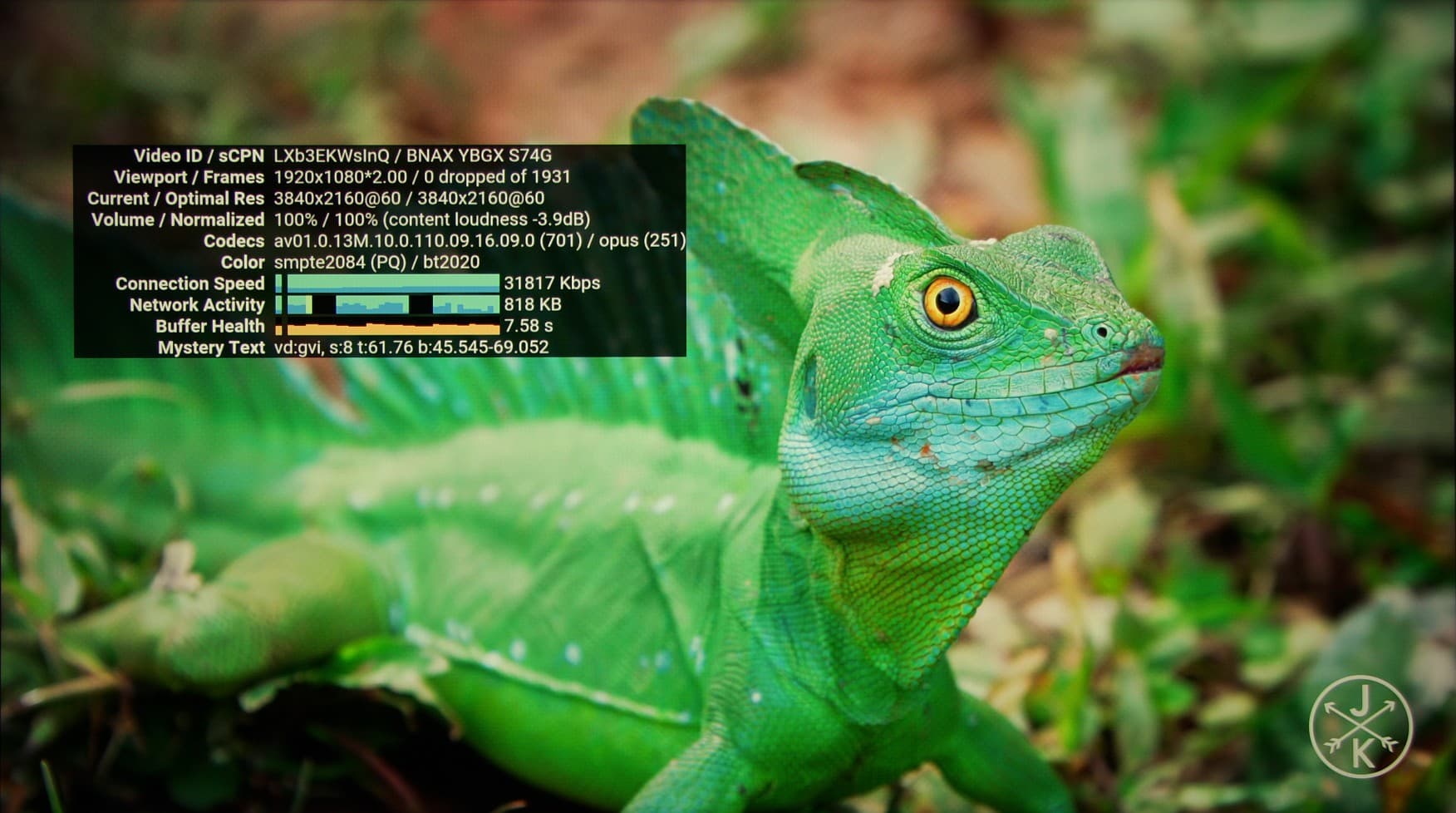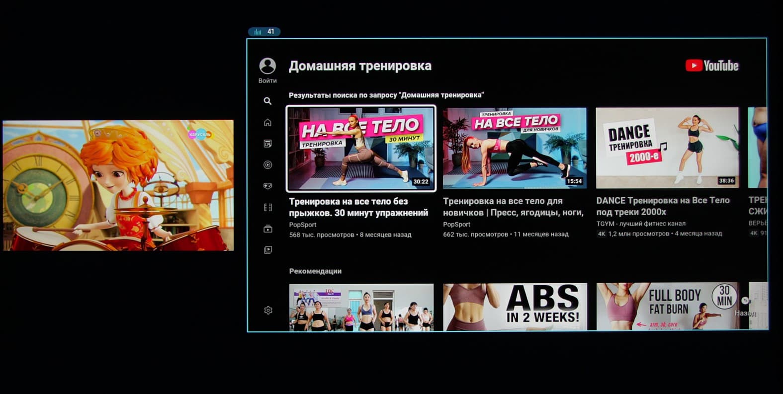 При всём при том, телевизор не воспроизводит из контейнеров AVI и MKV видео в кодеках DivX 3 и MPEG4 ASP, а файлы-контейнеры DivX и OGM в списке файлов вообще не отображаются. Впрочем, если ограничиться современными и более-менее распространенными форматами видеофайлов, то с очень большой вероятностью телевизор их воспроизведет. Поддерживается воспроизведение видеофайлов HDR (HDR10 и HLG; контейнеры WebM, MKV, MP4, TS; кодеки HEVC (H.265), AV1 и VP9), а в случае файлов с 10 бит на цвет согласно визуальной оценке градаций оттенков больше, чем у 8-битных файлов. Таким образом, в случае данного ТВ обеспечивается яркость до нескольких сотен кд/м², расширенный цветовой охват и 10 бит на цвет, то есть поддержка HDR реальная. В качестве примера источника HDR-контента можно привести предустановленное приложение YouTube, в котором удалось посмотреть видео в разрешении 4K с HDR при 60 кадр/с.