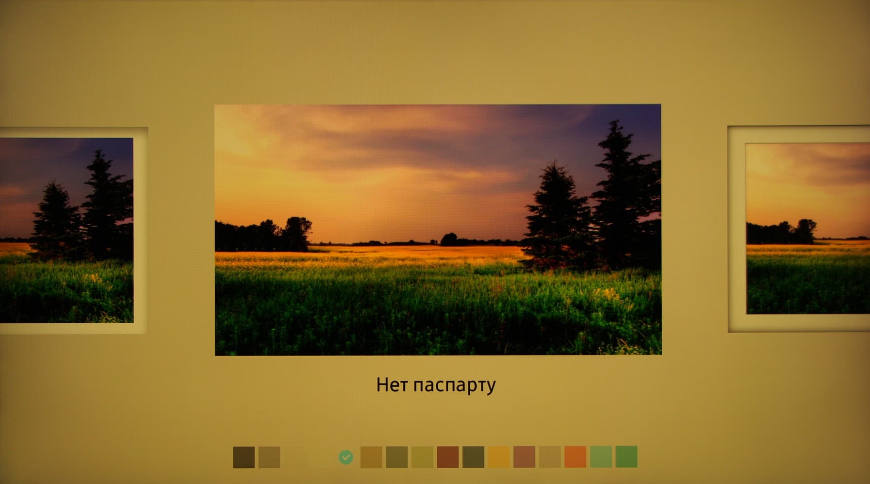 Похожим на произведение искусства этот телевизор делают не только сменные рамки, но и специальный режим «Картина» (Art Mode), предназначенный для демонстрации картин и фотографий. В режим «Картина» работающий телевизор переключается при коротком нажатии на кнопку питания на пульте, или из главного меню, или из приложения SmartThings. В режиме «Картина» телевизор статично демонстрирует выбранное изображение или изображения в режиме слайд-шоу.