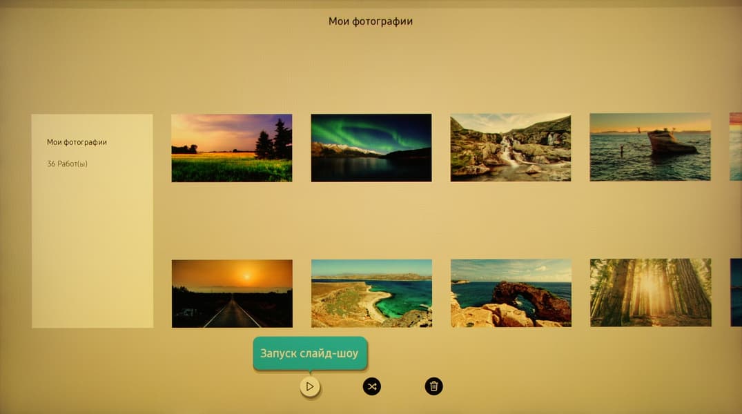Пользователь может создать свой набор изображений, загрузив их или с USB-устройства, подключенного к телевизору, или с мобильного устройства с помощью приложения SmartThings.