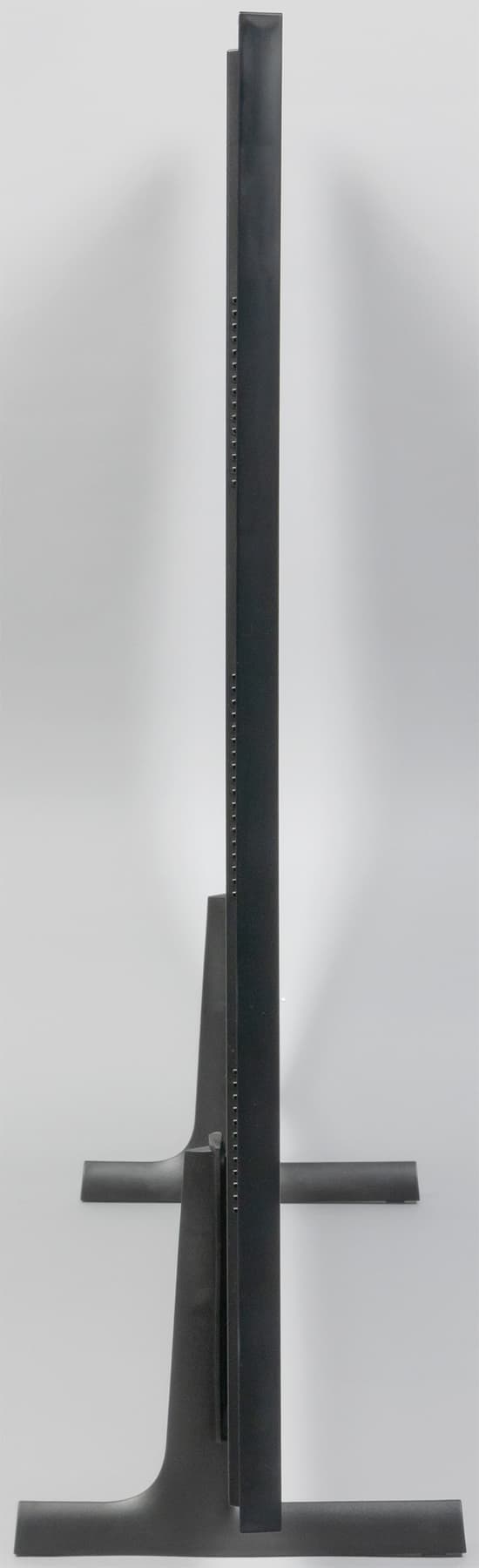 Опираются ножки на резиновые противоскользящие накладки. Жесткость конструкции высокая, телевизор стоит устойчиво и вертикально, без видимого наклона.