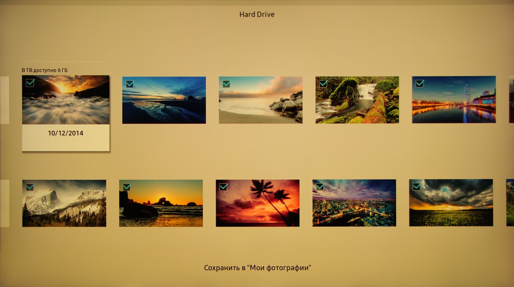 Нами подтверждена способность телевизора показывать растровые графические файлы в форматах JPEG, MPO (один ракурс), PNG и BMP, в том числе в виде слайд-шоу под выбранную фоновую музыку. Изображения JPEG и PNG размером 3840×2160 пикселей выводятся один к одному по пикселям в истинном разрешении 4К и даже без снижения цветовой четкости. Присутствует режим просмотра панорамных изображений 360 градусов: