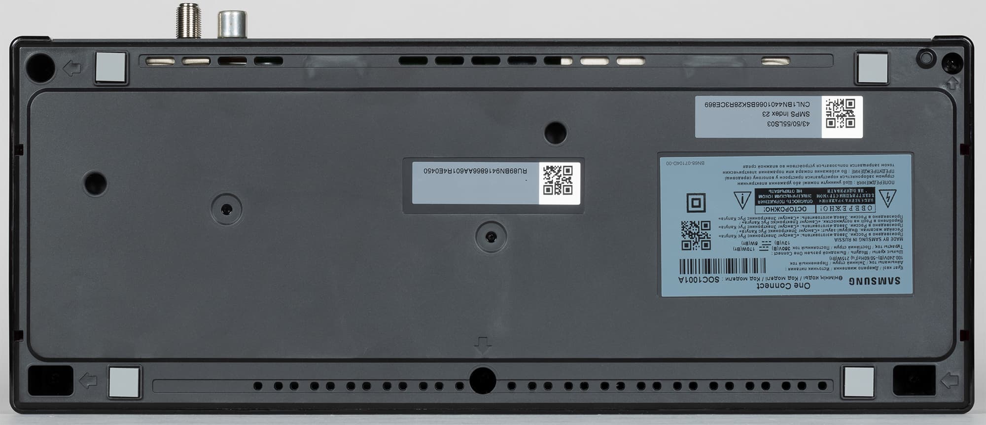 Модуль One Connect представляет собой относительно большую (348×137×65 мм, без выступающих частей) и тяжелую (2402 г) прямоугольную коробку.