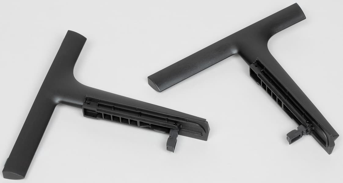 Штатная подставка состоит из двух Т-образных ножек, изготовленных из пластика с черной матовой поверхностью.