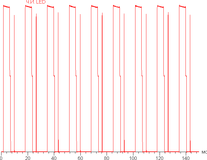 Однако, если включить режим Кино или Игра, то частота ШИМ возрастает до 480 Гц, что очень сильно снижает заметность мерцания — в обычных условиях его не видно. Ниже приведена зависимость яркости от времени для режима Игра.
